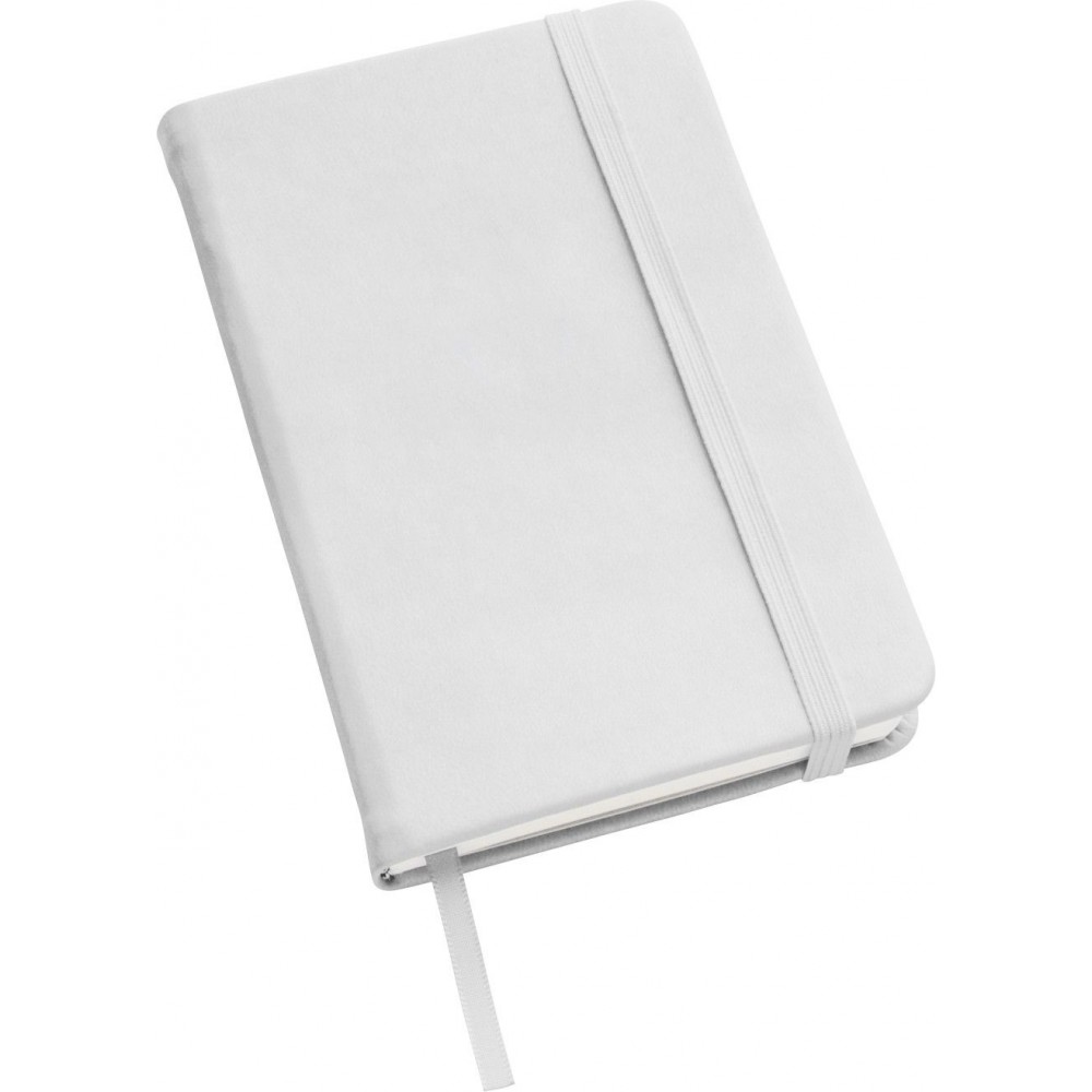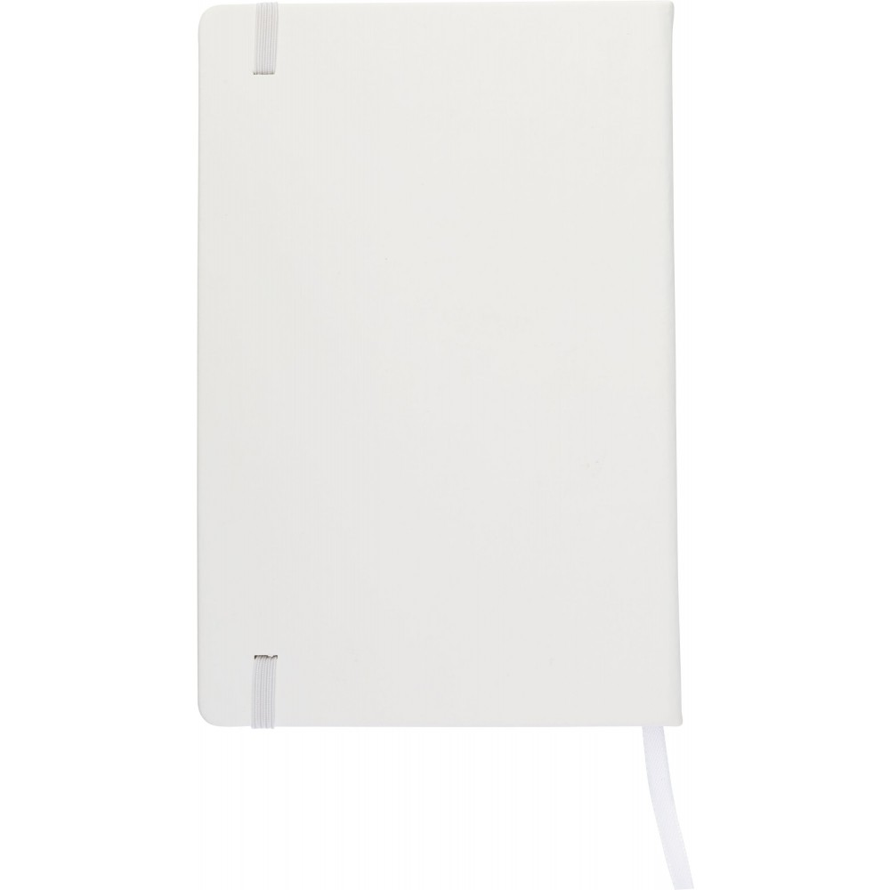 Füzet 96 vonalas lappal, színben illeszkedő gumis zárószalaggal és könyvjelzővel. PU, 70 g papír. Emblémázás: Tamponnyomás, UV nyomtatás