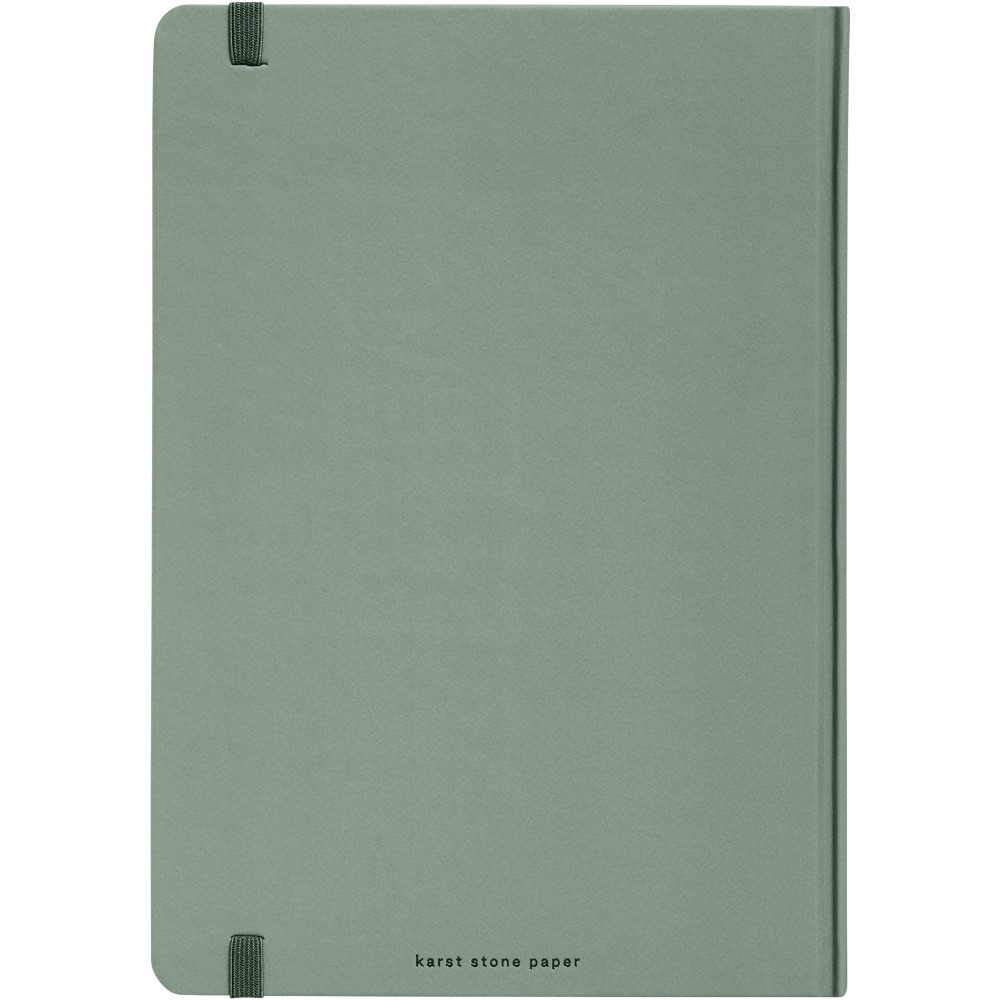 Karst A5 keményfedeles füzet. Az oldalak sima textúrája és a lapos kötészet bőséges kényelmet és íróteret biztosít jegyzetei számára. Elasztikus pánt, 144 vízálló, szakadásálló vonalas lap, kibővíthető hátsó zseb a tároláshoz, valamint könyvjelző és lekerekített sarkok. Emblémázás: UV nyomtatás