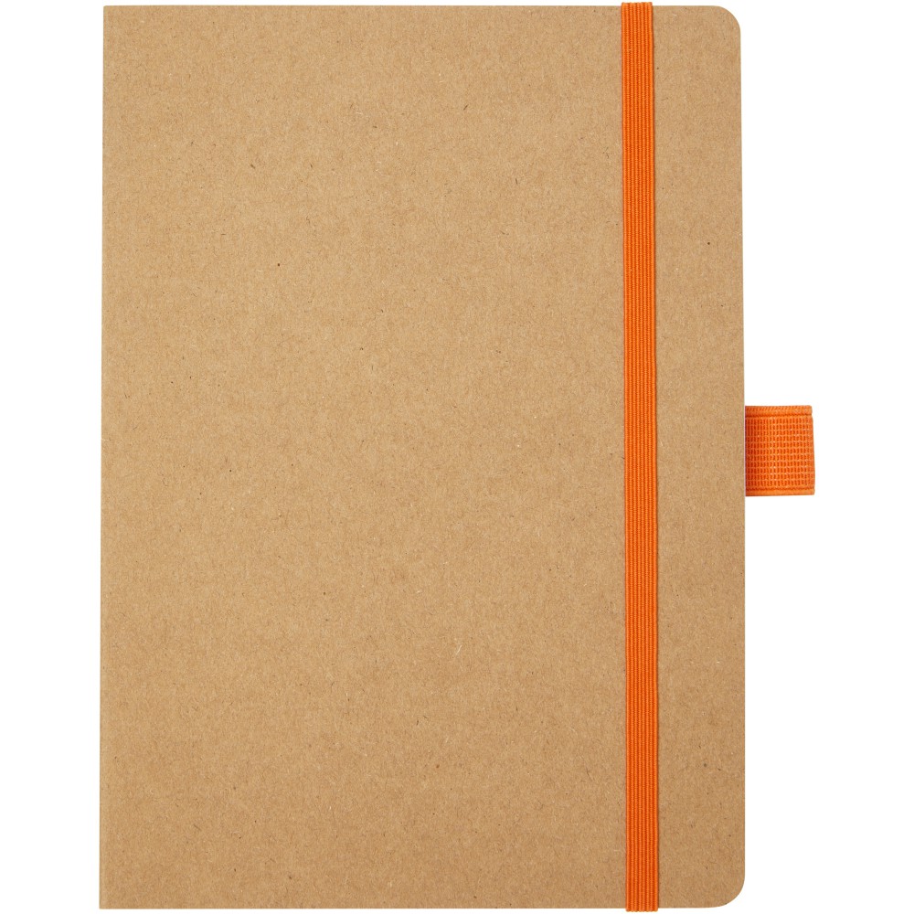 Jegyzetfüzet újrahasznosított vonalas lapokkal (70 g/m2), lekerekített sarkokkal, színes gumi záródással és az 107384-es tollszínhez illő tollhurokkal. Emblémázás: Szitanyomás, Tamponnyomás