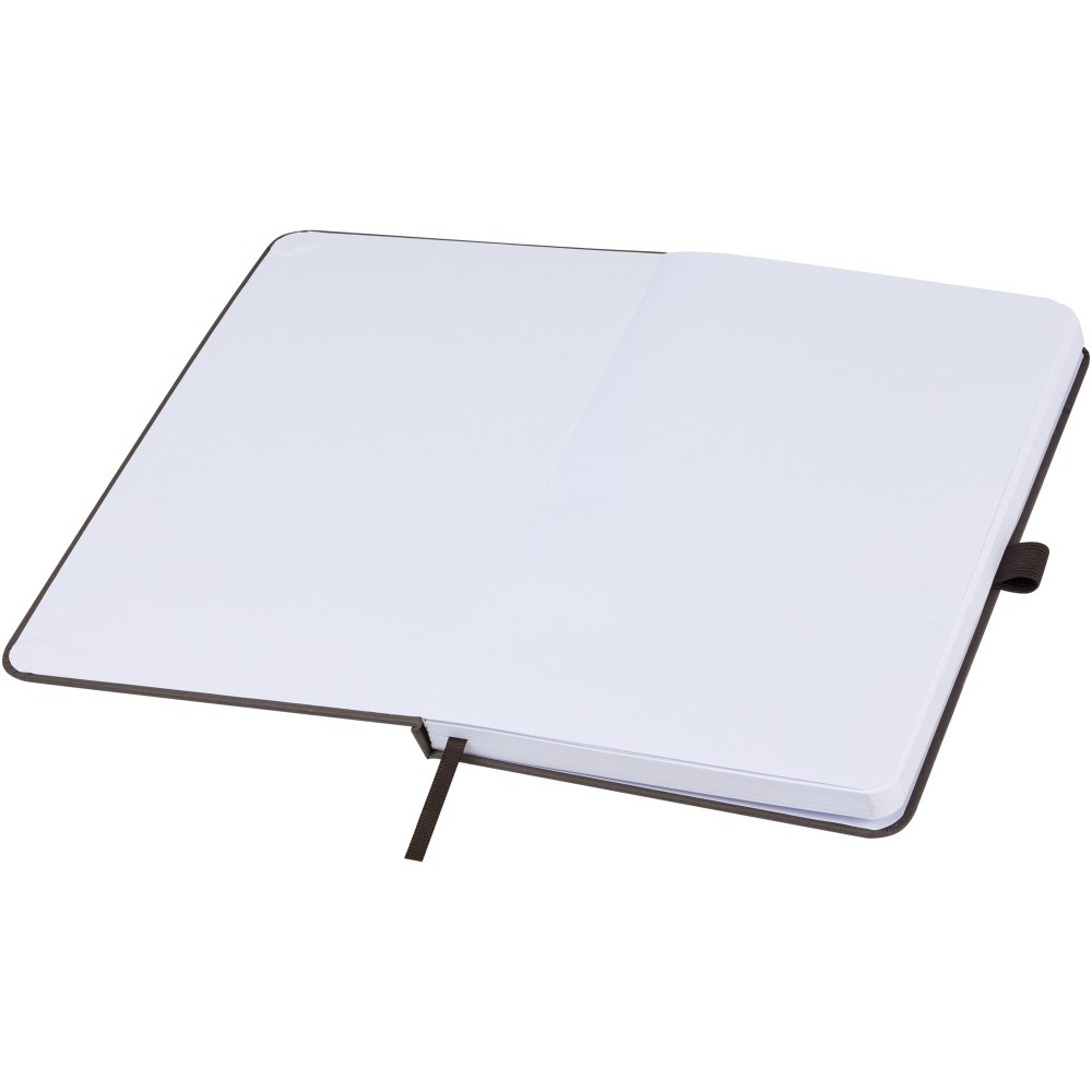 Könnyű, keményfedeles jegyzetfüzet a mindennapi jegyzeteléshez újrahasznosított alapanyagokból készült borítóval. A barna borító kávémaradványt, a zöld borító olajbogyó-maradványt, a fehér pedig kukoricamaradékot tartalmaz. 80 lap (70 g/m2) újrahasznosított fehér vonalas lapot tartalmaz. Emblémázás: Tamponnyomás