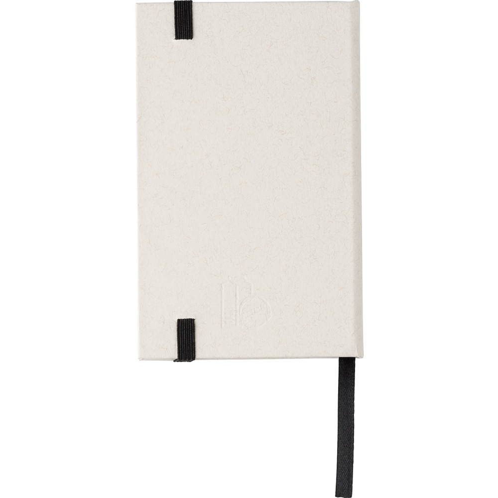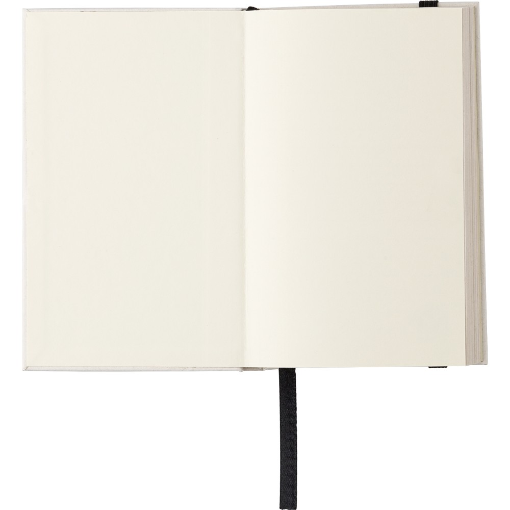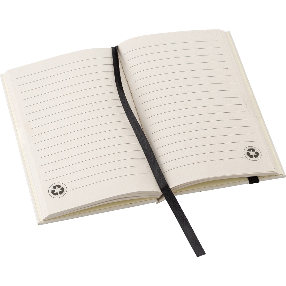 Újrahasznosított tejesdobozból készült A6-ös jegyzetfüzet 80 lappal, gumiszalaggal és könyvjelzővel. 70%-ban újrahasznosított tejeskartonból és 30%-ban újrahasznosított papírból készült. Igazolóbélyegző a füzet hátuljának az alján. Emblémázás: Tamponnyomás, UV nyomtatás
