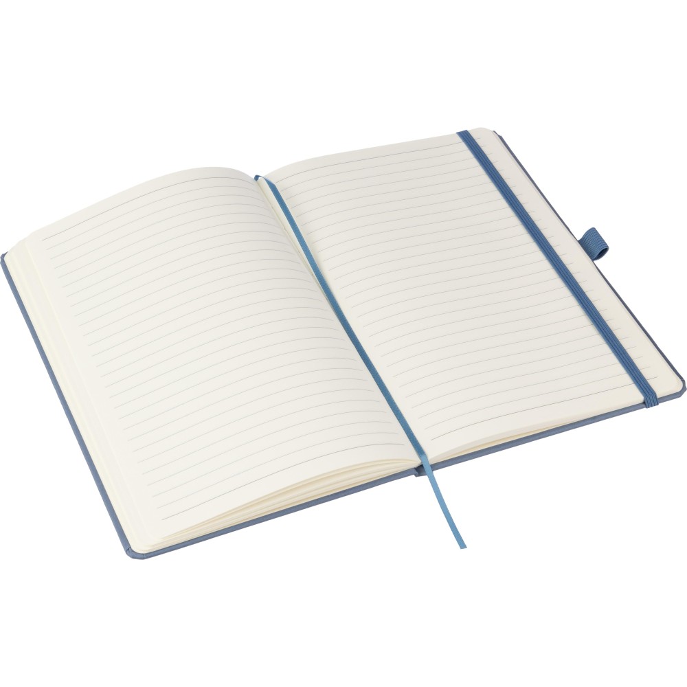Újrahasznosított biohulladékból és kartonból készült A5-ös jegyzetfüzet 80 vonalas lappal, szójatintával nyomtatva. Minden füzet hátoldalán a hivatkozott alapanyag színének megfelelő dombornyomás található: zöld a citrusfélék, piros a cseresznye, kék a levendula, natúr a szőlő és a barna a mandula alapanyagra utal. A jegyzetfüzet olasz Favini papírral van bevonva. Emblémázás: Szitanyomás, Tamponnyomás