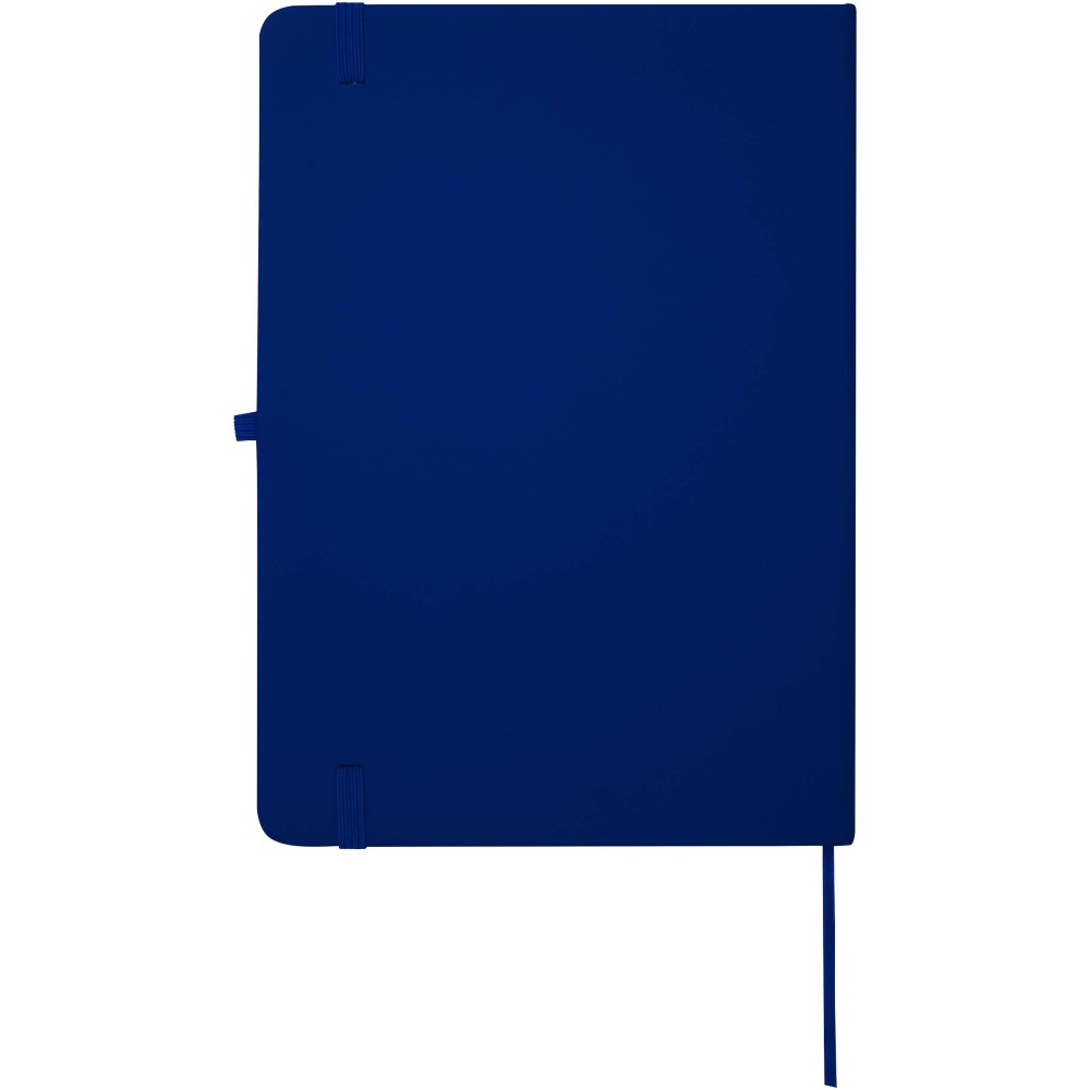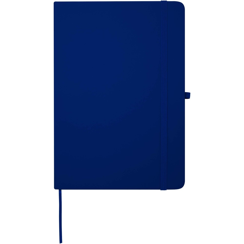 A Spectrum Plus A5 keményfedeles jegyzetfüzet lekerekített sarkokkal nemcsak az irodai mindennapok elengedhetetlen kelléke, hanem remek lehetőség márkád népszerűsítésére is. A jegyzetfüzet puha tapintású borítóval rendelkezik és 80 vonalas, krémszínű, 70 g/m2-es lapból áll, amely tökéletes gyors ötletek vagy hosszabb jegyzetek rögzítésére. A jegyzetfüzet tolltartó hurokkal, gumiszalagos záródással, könyvjelzővel és harmonikazsebbel van ellátva. Emblémázás: Tamponnyomás, UV nyomtatás
