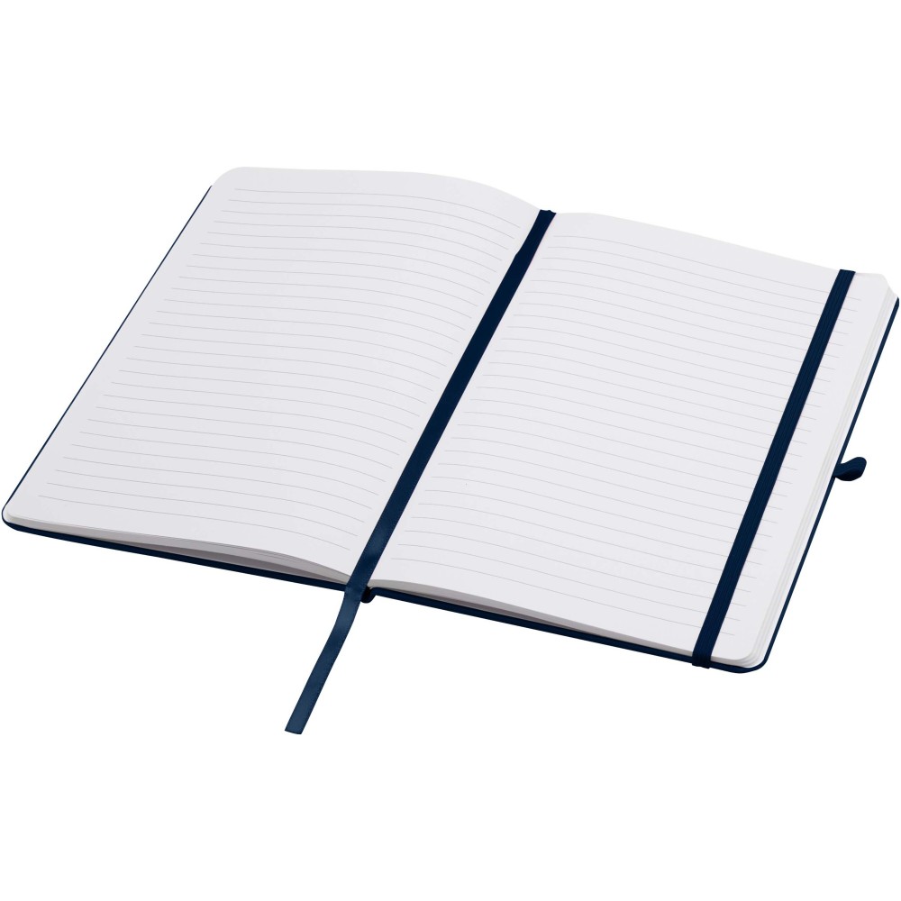 A Teak A5 méretű, újrahasznosított karton keménytáblás jegyzetfüzet lekerekített sarkokkal nemcsak irodai alapdarab, hanem kiváló lehetőség a márka népszerűsítésére is. A jegyzetfüzet 96 darab 70 g/m2-es vonalas lapot tartalmaz és puha tapintású borítóval rendelkezik. Beépített tolltartó hurokkal, rugalmas zárópánttal és könyvjelzővel van ellátva. Emblémázás: Tamponnyomás, UV nyomtatás