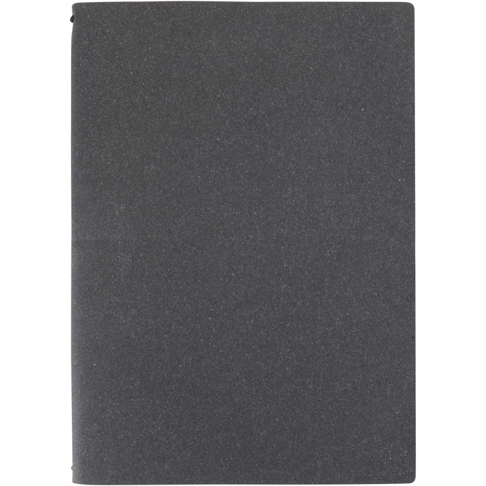 A Slyk A5 újratölthető füzet újrahasznosított műanyag borítóval és gumiszalagos záródással rendelkezik, amely két belső füzetet tart biztonságosan: egy pontozottat és egy vonalazottat. Mindegyik füzet 32 krémszínű, 70 g/m2 súlyú lapot tartalmaz, lekerekített sarkokkal és látható gerincvarrással a kézműves hatás érdekében. A füzetek borítói kartonból készülnek. Emblémázás: Szitanyomás, Tamponnyomás