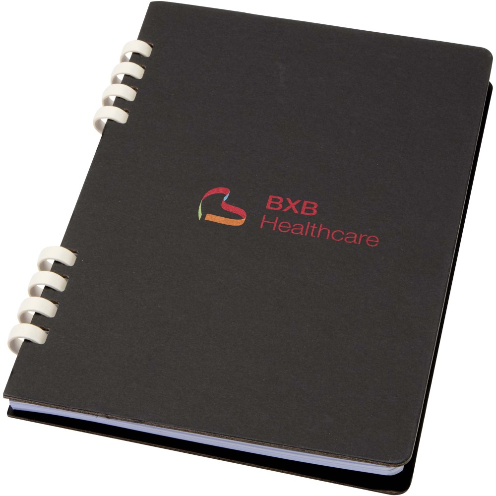 A Fil A5 méretű, keményfedeles spirálfüzet 60 vonalas lapot tartalmaz, amelyek 70 g/m2 súlyú, RCS tanúsítvánnyal rendelkező újrahasznosított papírból készültek. A teljes mértékben újrahasznosított anyagokból előállított termék praktikus választás, mivel használat után egyszerűen és környezettudatosan újrahasznosítható. Emblémázás: Szitanyomás