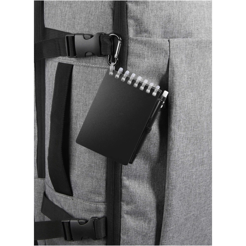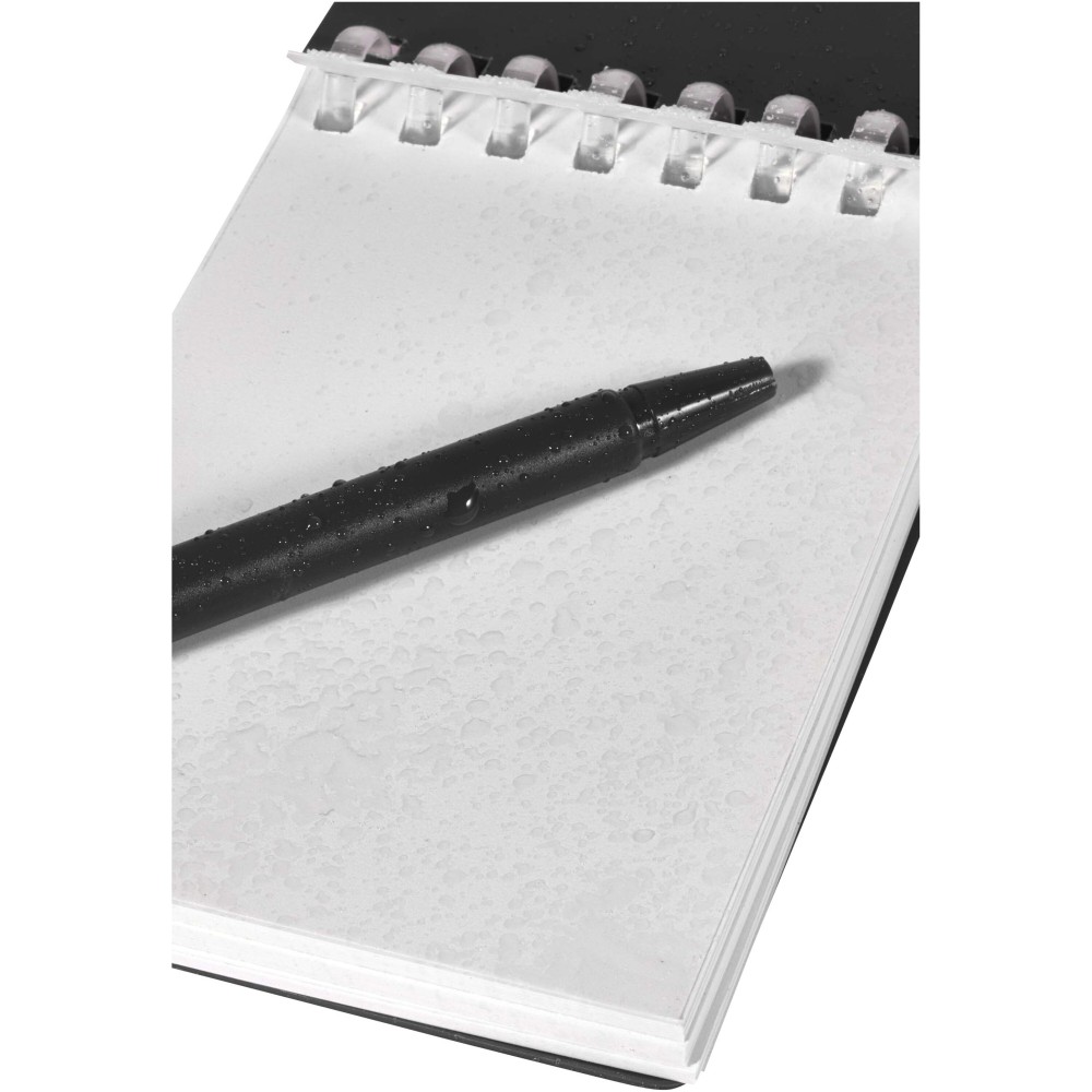 A Lig Mini jegyzetfüzet és toll szett kompakt és praktikus társ a gyors jegyzeteléshez útközben. A spirálfüzet puha, újrahasznosított műanyag borítással és 70 darab, 120 g/m2 súlyú, vízálló kőpapírból készült üres lappal rendelkezik, így ideális választás szabadtéri használatra is. A kerekített sarkokkal és beépített tolltartó pánttal ellátott kiegészítő tökéletesen követi a "mini" trendet, miközben teljesen funkcionális marad. A szetthez tartozó golyóstoll újrahasznosított ABS műanyagból készült, fekete tintával ír, íráshossza pedig 250 méter. A színben harmonizáló fémgyűrű segítségével a szett könnyen rögzíthető hátizsákra, táskára vagy kulcscsomóra, így tartós és hordozható megoldást nyújt a jegyzetek rögzítéséhez. A jegyzetfüzet mérete: 11 × 7,5 cm. Emblémázás: Szitanyomás, Tamponnyomás