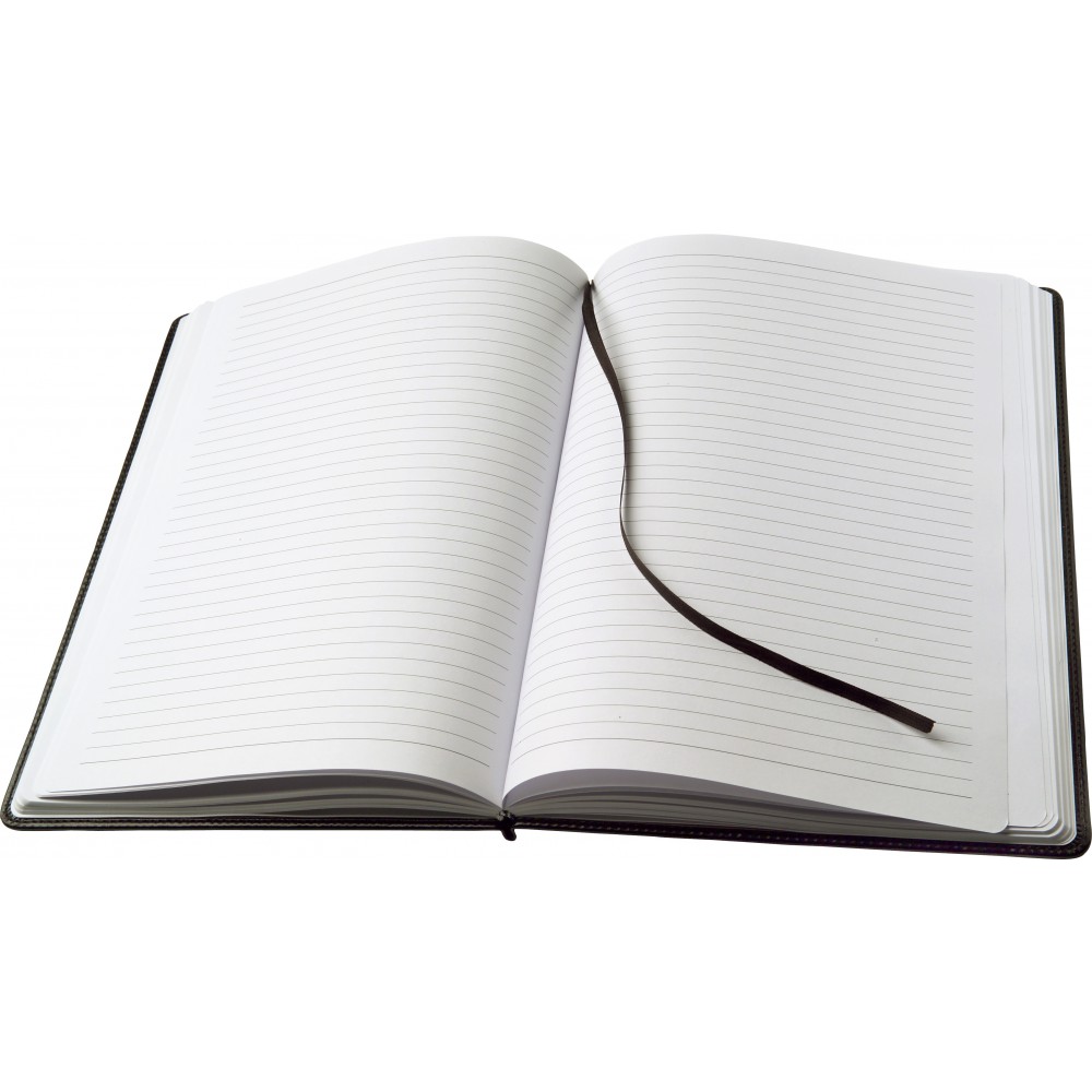 A4-es jegyzetfüzet PU borítással, 100 lappal, jelzőszalaggal. Emblémázás: Tamponnyomás, UV nyomtatás