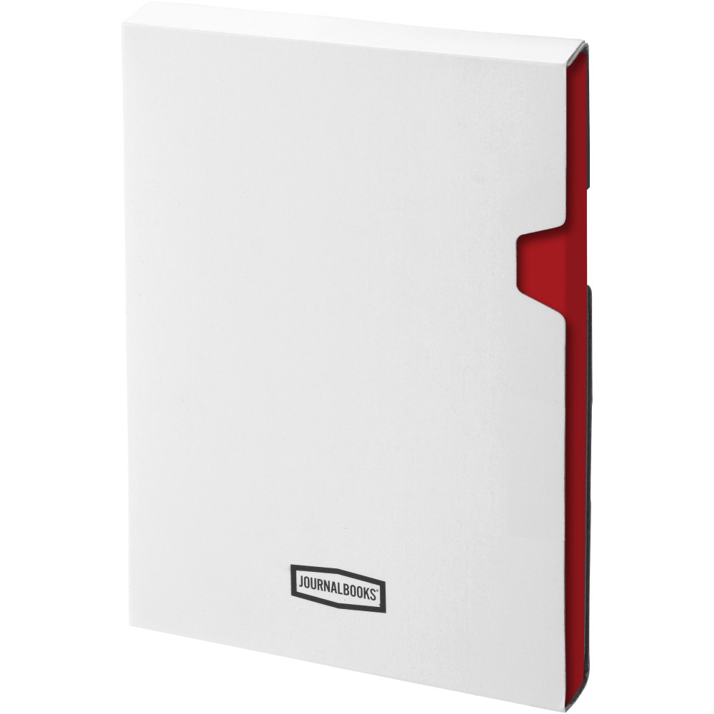 Ez az exkluzív kivitelű, klasszikus stílusú, keményfedeles, gumiszalaggal záródó, 80 lapos (80 g/m2), vonalas zsebkönyv (A5 méret) ideális jegyzetek készítéséhez és megosztásához. A hátoldalán kihúzható zsebbel a kisebb jegyzetek tárolásához. Journalbooks díszdobozban. Emblémázás: Szitanyomás, Tamponnyomás, UV nyomtatás