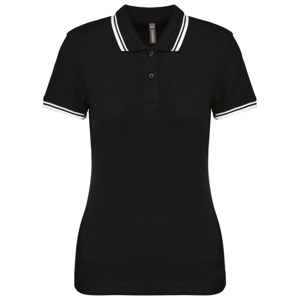 Kariban női rövidujjú galléros póló, Black/White