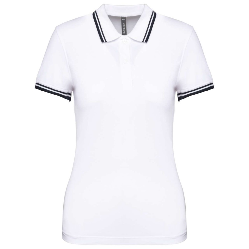 Kariban női rövidujjú galléros póló, White/Black