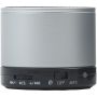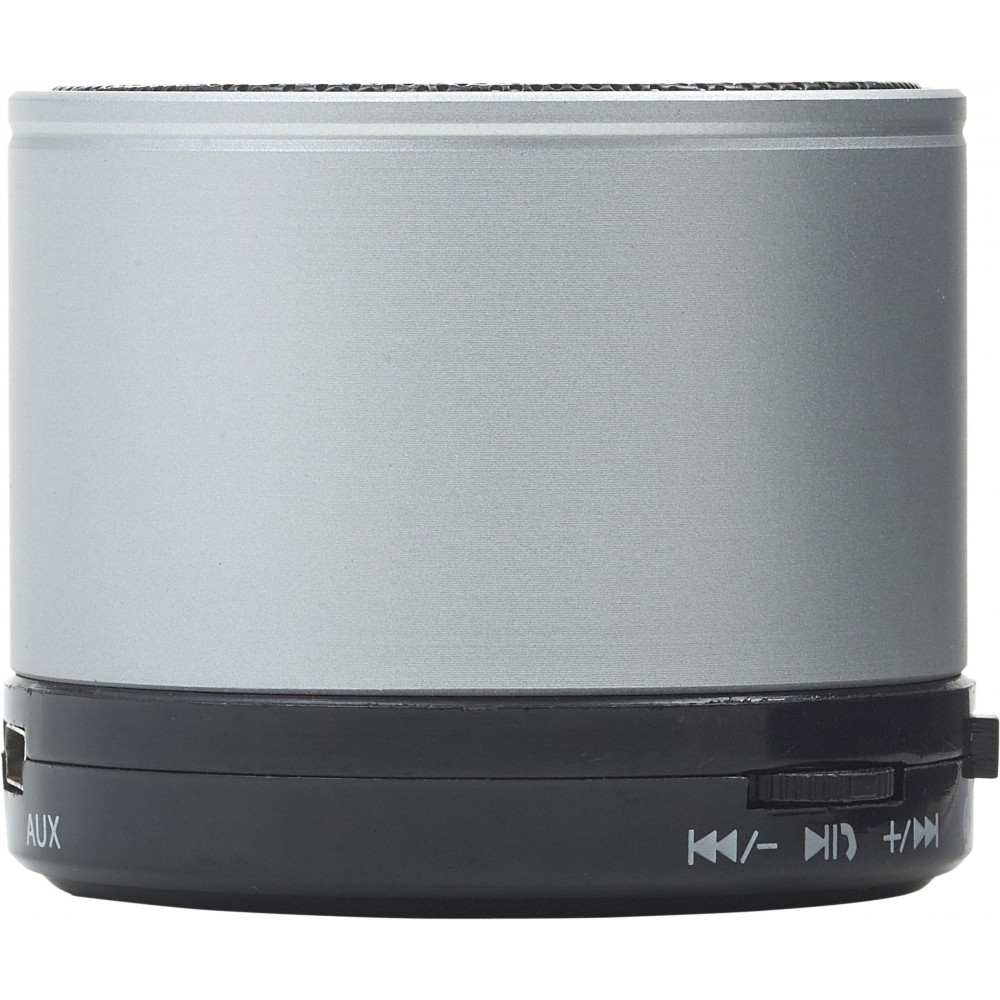 Vezeték nélküli hangszóró hangerő szabályozóval, előre- és visszaléptető gombbal, valamint módválasztó gombbal: MP3, vezeték nélküli mód és kikapcsolás. A töltőkábelt tartalmazza. Színezett fém anyag. Emblémázás: Tamponnyomás, UV nyomtatás