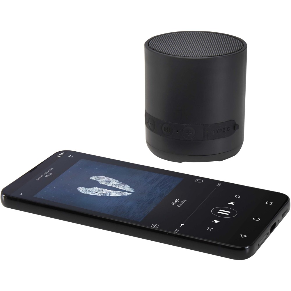 A Hunor 3W vezeték nélküli Bluetooth® hangszóró újrahasznosított műanyagból készült, és Type-C töltőporttal, hangerőszabályzóval, Lejátszás/Szünet/Hívás gombbal, valamint beépített mikrofonnal rendelkezik. A TWS (True Wireless Stereo) funkciónak köszönhetően két hangszóró párosítható a valódi sztereó hangzás élményéért. Emblémázás: Gravírozás, Tamponnyomás