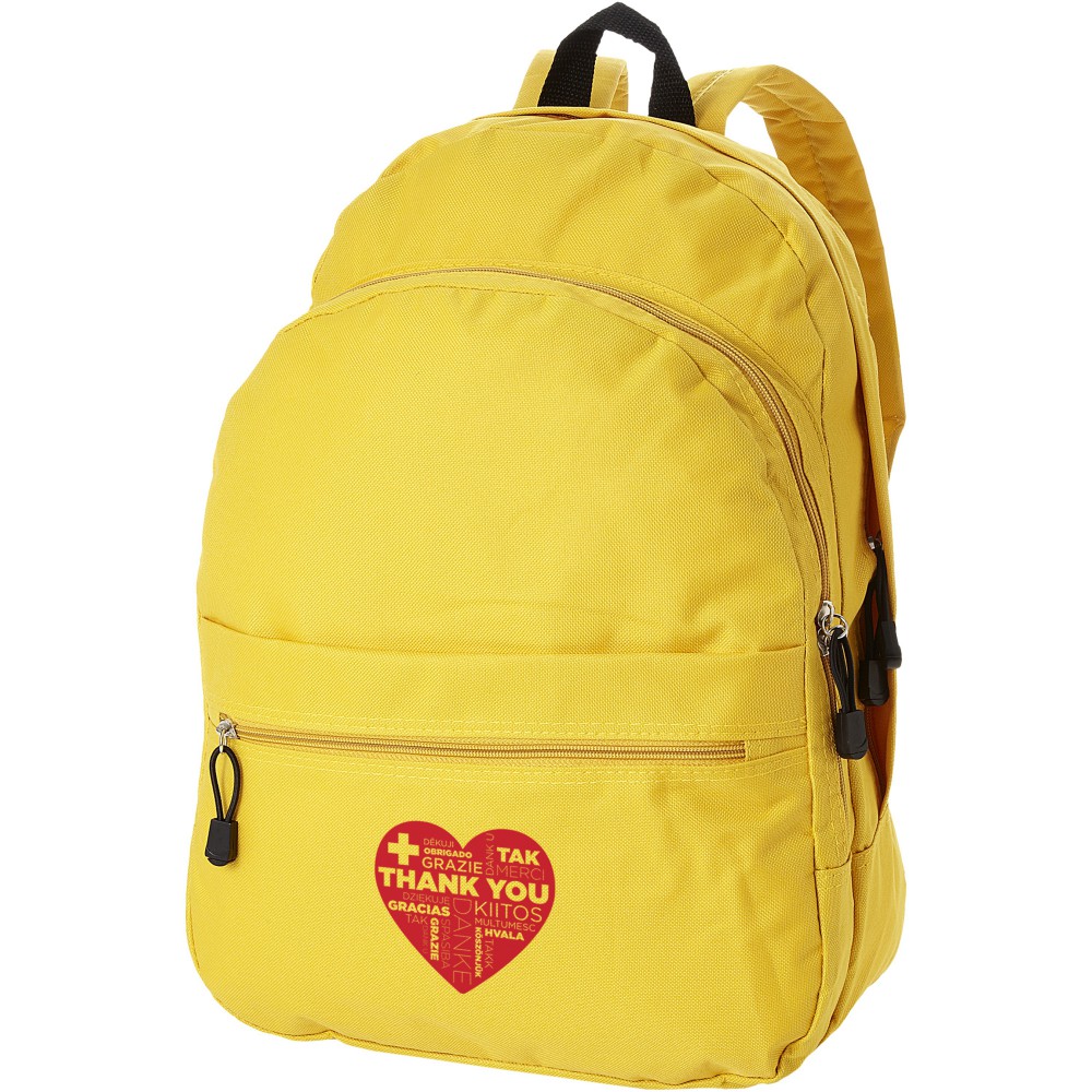 A kényelmes Trend hátizsák nyerő a promóciós hátizsákok között. A divatos kialakítású táska négy rekesszel rendelkezik: két cipzáras rekesszel, egy elülső cipzáras zsebbel és egy tépőzáras elülső zsebbel, így bőséges helyet kínál nagy és kis tárgyak tárolására egyaránt. A termék 600D poliészterből készült. Emblémázás: Hímzés, Szitanyomás