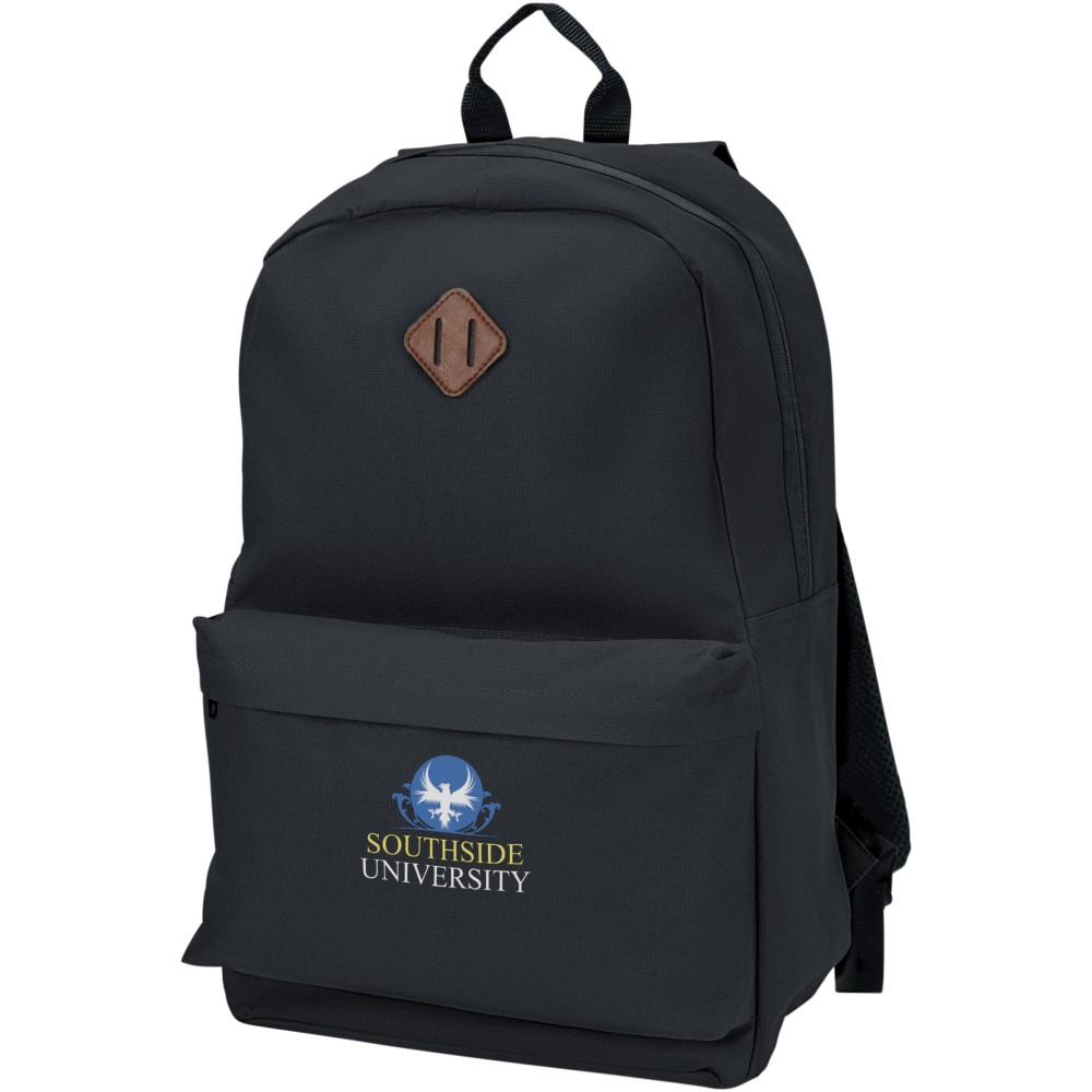 Laptophátizsák nagy fő résszel és egy tokkal 15 -os készülék számára. Állítható vállpánt, cipzáros elsőzseb és pántok az eszközök rögzítéséhez. 600D Poliészter. Emblémázás: Szitanyomás