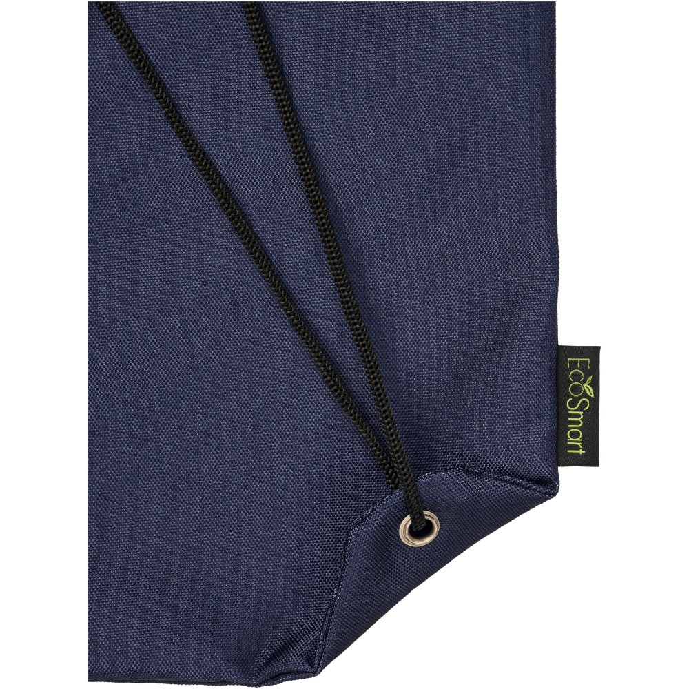 Tornazsák 100% -ban újrahasznosított műanyagból. Nagy tárolórész, fekete húzózsinórral. Mérete: 33*44 cm. Űrtartalom: 5 liter, teherbírás: 5 kg-ig. Emblémázás: Szitanyomás