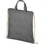 Tornazsák 210 g / m2 újrahasznosított pamut poliészter keverékből. Az újrahasznosított pamut textilipari szabászati hulladékból ered. Az újrahasznosított anyag természetéből fakadóan kisebb eltérések lehetnek a színben. Fülmagasság 14 cm. Teherbírás 5 kg-ig. Újrahasznosított pamut, 210 g/m2, újrahasznosított poliészter. Emblémázás: Szitanyomás