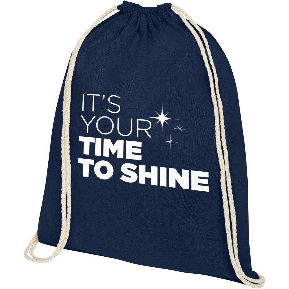 Tornazsák natúr húzózsinórral. Teherbírás: 5 kg. 140 g/m2 pamut. Pamut, 140 g/m2. Emblémázás: Szitanyomás