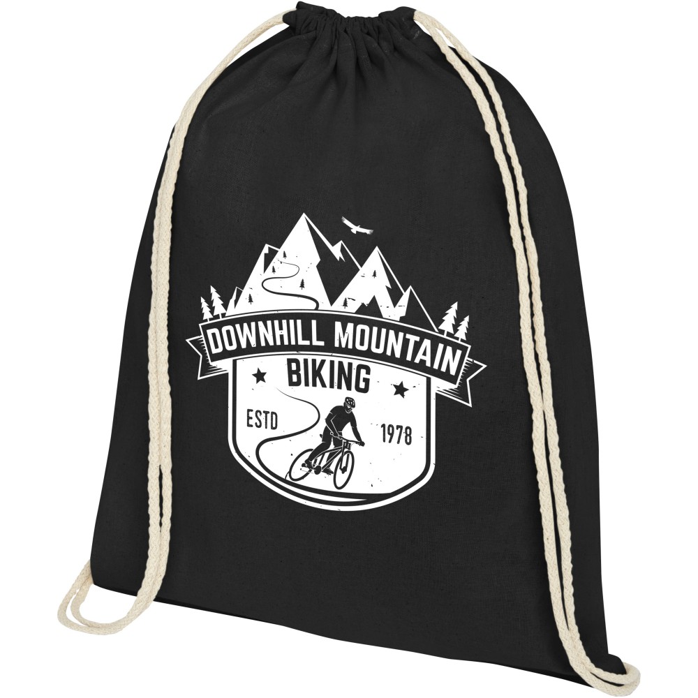 Tornazsák natúr húzózsinórral. Teherbírás: 5 kg. 140 g/m2 pamut. Pamut, 140 g/m2. Emblémázás: Szitanyomás
