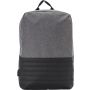 Kéttónusú lopásgátló hátizsák állítható és párnázott vállpánttal, párnázott hátkialakítással. Egy nagy fő rekesz cipzárral és párnázott laptop rekesszel (15"-es laptop számára). Külső USB-port, belül kábel. 600D + 300D PVC. Emblémázás: Szitanyomás