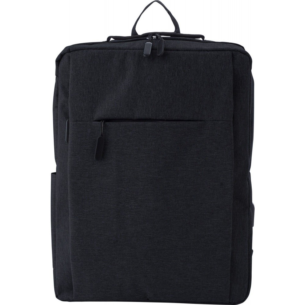 Hátizsák egy cipzáras fő rekesszel és első zsebbel. Oldalt USB kimenet. Állítható, párnázott vállpántok. 600D poliészter. Emblémázás: Szitanyomás