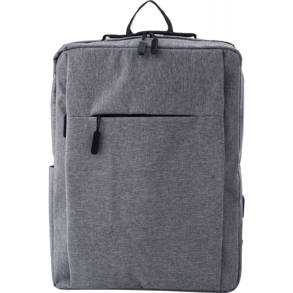 Hátizsák egy cipzáras fő rekesszel és első zsebbel. Oldalt USB kimenet. Állítható, párnázott vállpántok. 600D poliészter. Emblémázás: Szitanyomás