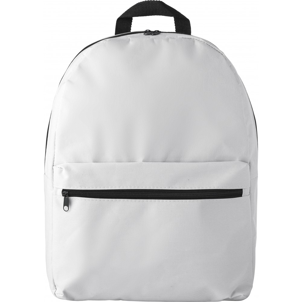 Hátizsák cipzáros elsőzsebbel, állítható, párnázott vállpánttal. 600D poliészter. Emblémázás: Szitanyomás