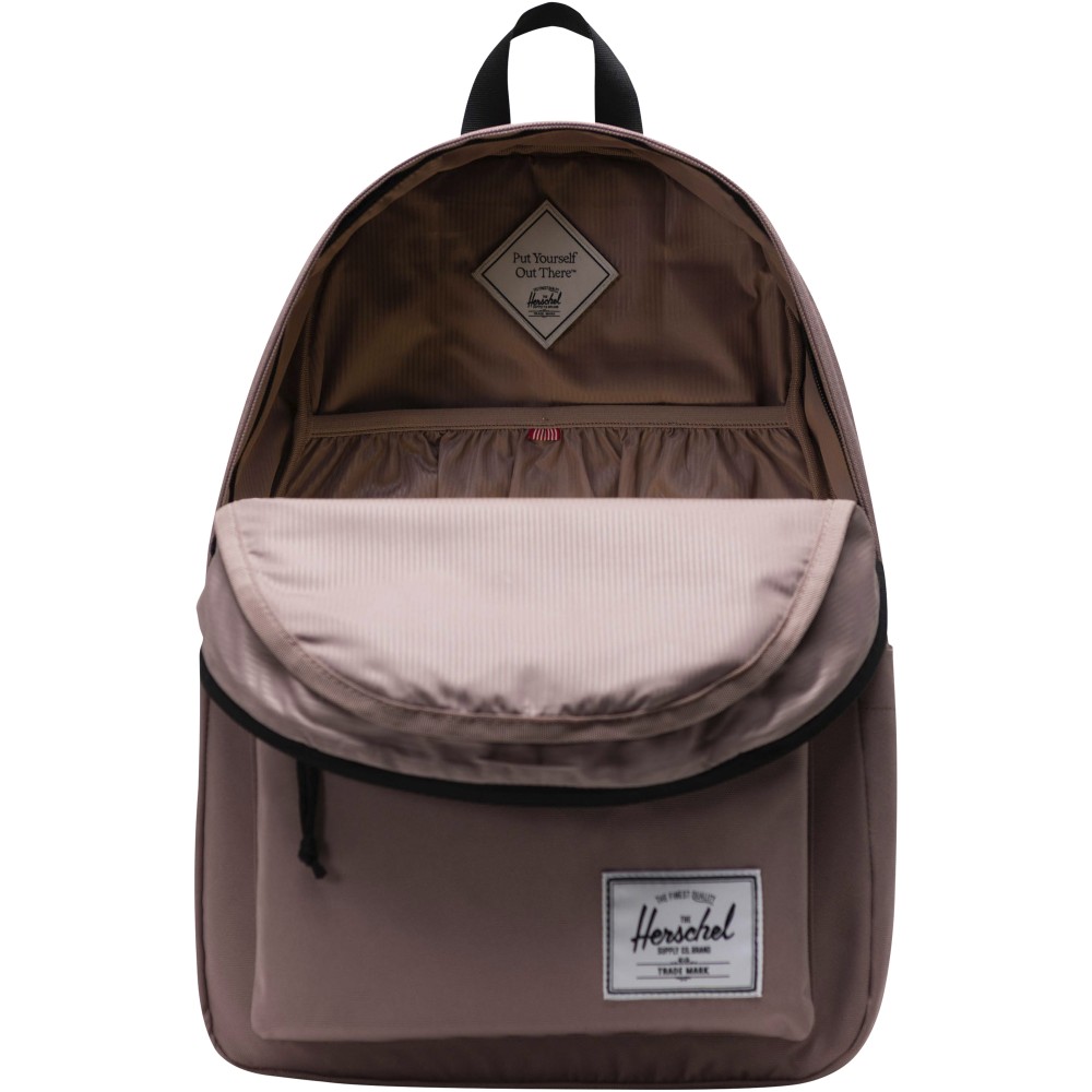 Készülj fel a következő utazásodra a Herschel Classic hátizsákkal, amely bőséges helyet biztosít minden lényeges dolognak. A hátizsák szakértelemmel készült, 100%-ban fenntartható EcoSystem anyagokból, így nyugodt lelkiismerettel kalandozhatsz. A 600D szövet mesterien kidolgozott, 100%-ban újrahasznosított vizespalackokból készült, kivételes tartósságot kínálva. A hátizsák belsejében egy párnázott tokot találsz, amely biztonságosan illeszkedik 15 /16 -os laptophoz. Az állítható és párnázott vállpántok kényelmet nyújtanak hosszú utak során. A hátizsák külön kulacszsebbel és elülső zsebbel rendelkezik, amely lehetővé teszi a kisebb tárgyak egyszerű tárolását. 26 literes térfogatával a Herschel Classic hátizsák tökéletes társ minden kalandhoz. Emblémázás: Hímzés