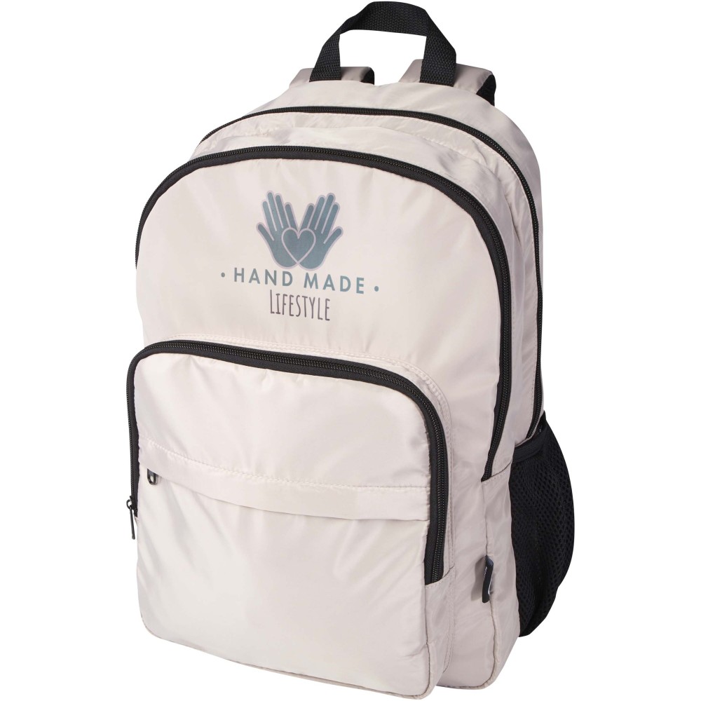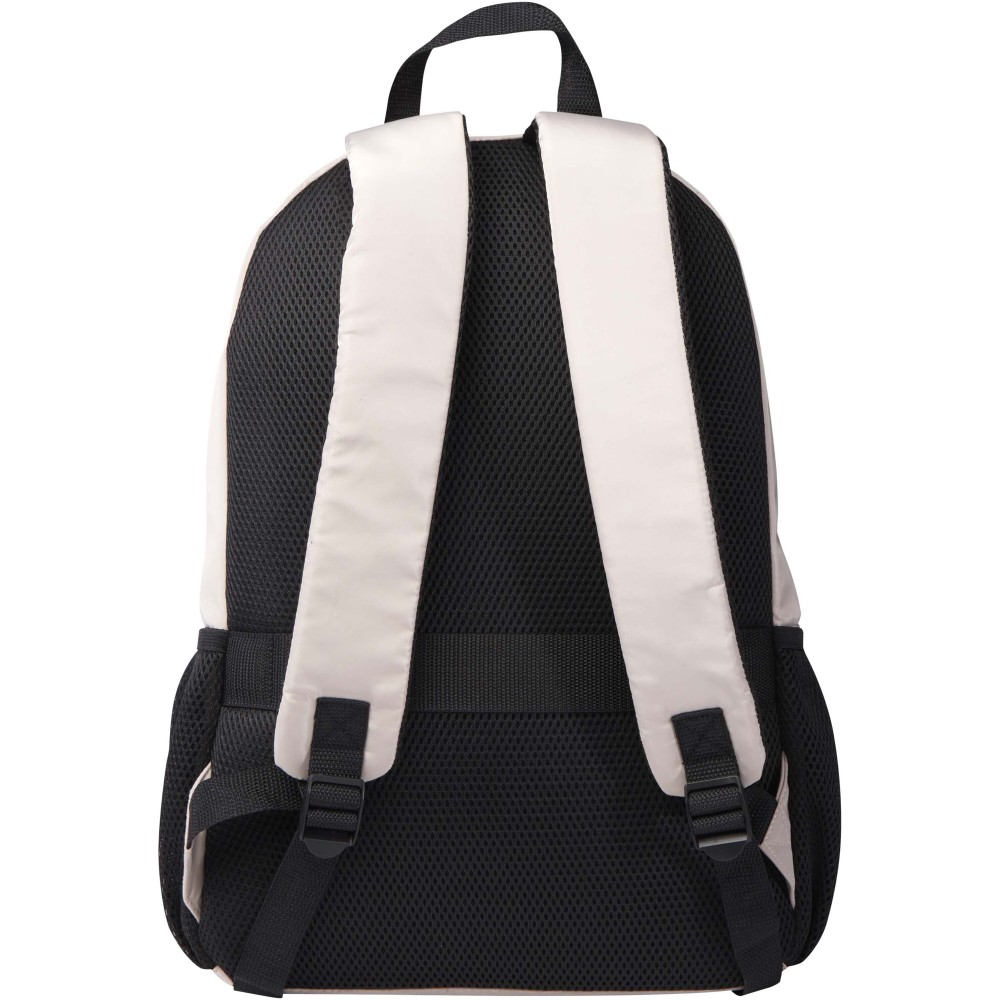 A Trend Plus hátizsák GRS tanúsítvánnyal rendelkező újrahasznosított, puha és gyűrődésálló anyagból készült, minőségi RPET béléssel. A hátizsák 15?-os laptoprekesszel, rendszerező rekesszel, cipzáras elülső zsebekkel, oldalsó rugalmas hálós zsebekkel, valamint légáteresztő hátpárnázattal és bőröndpánttal rendelkezik. Az állítható vállpántok maximális kényelmet biztosítanak. Űrtartalma: 20 liter. Teherbírás: akár 10 kg. PVC-mentes. Emblémázás: Szitanyomás