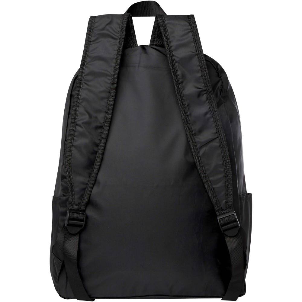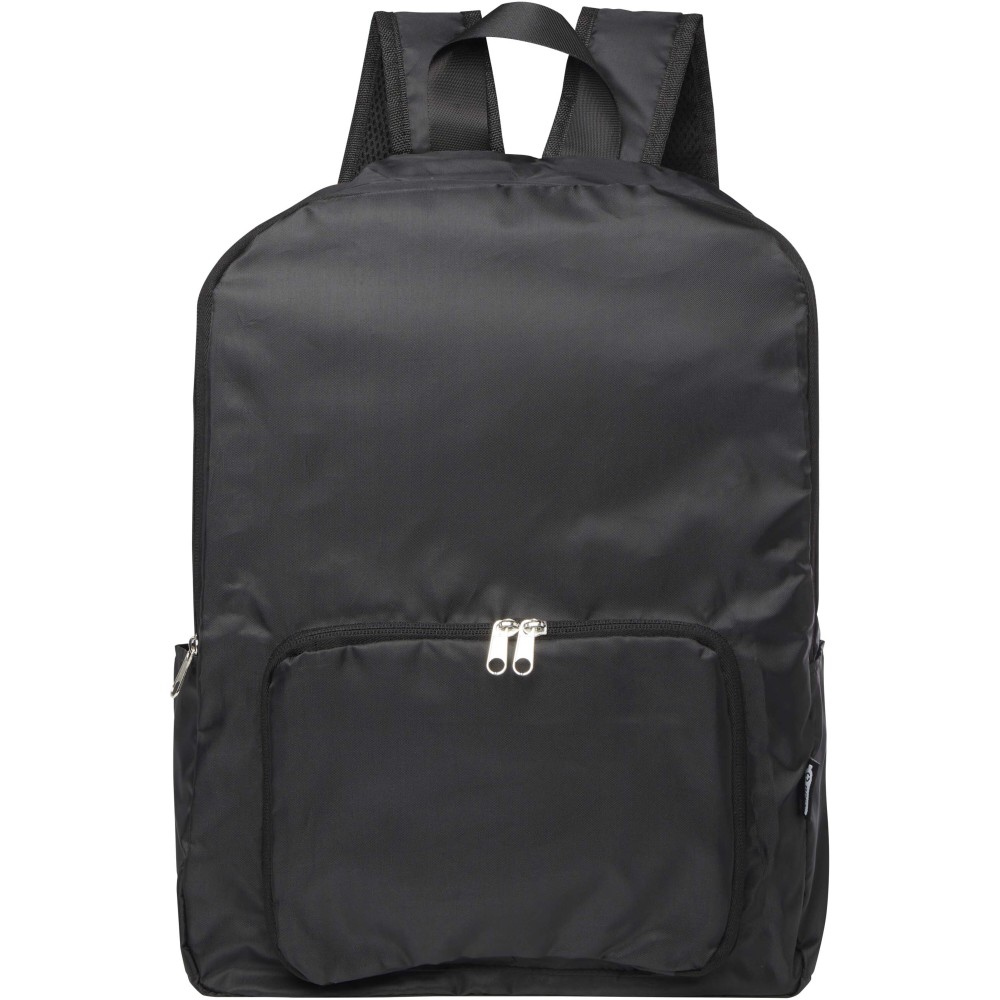 Ez a könnyű, mégis strapabíró hátizsák a kényelem és praktikusság jegyében készült, és könnyedén egy kompakt tasakba hajtható, amelyen szövettáska hurok található a kényelmes hordozás érdekében - ideális utazók, túrázók és a mindennapi használat számára. Cipzáras főrekesszel, cipzáras elülső zsebbel, két oldalsó zsebbel és állítható vállpántokkal rendelkezik. PVC-mentes újrahasznosított poliészterből készült. Űrtartalma: 15 liter. Emblémázás: Szitanyomás