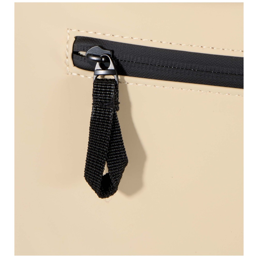 Prémium, újrahasznosított PU bőrből készült, színben harmonizáló RPET béléssel, ez a rolltop hátizsák modern megjelenést és hosszú élettartamot kínál. Vízlepergető felülete megóvja a tartalmát esőtől és nedvességtől, míg a feltekerhető zárórész rugalmas pakolást tesz lehetővé - ideális laptop hátizsákként ingázáshoz, utazáshoz vagy edzőterembe. Belsejében párnázott rekesz található, amely akár 15,6" laptopot is biztonságosan tárol, valamint egy cipzáras zseb a technikai eszközök és mindennapi kellékek rendszerezésére. A külső részen vízálló cipzárral ellátott elülső zseb biztosít gyors és biztonságos hozzáférést, míg a párnázott, állítható vállpántok és a légáteresztő hátpanel egész napos kényelmet nyújtanak. Emblémázás: Szitanyomás