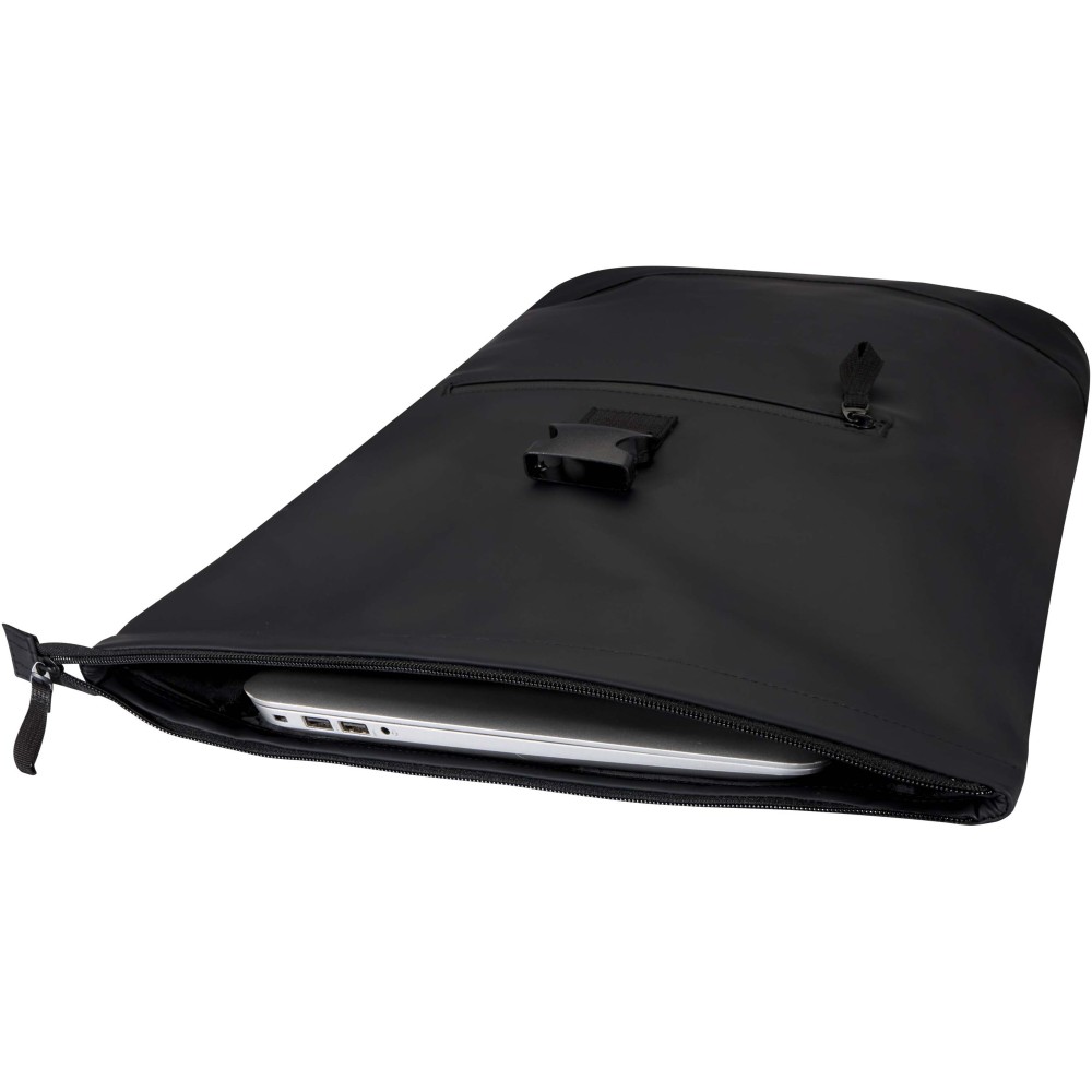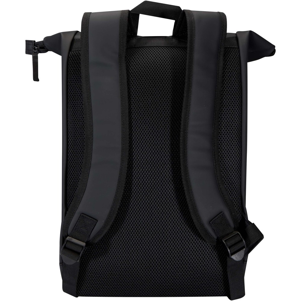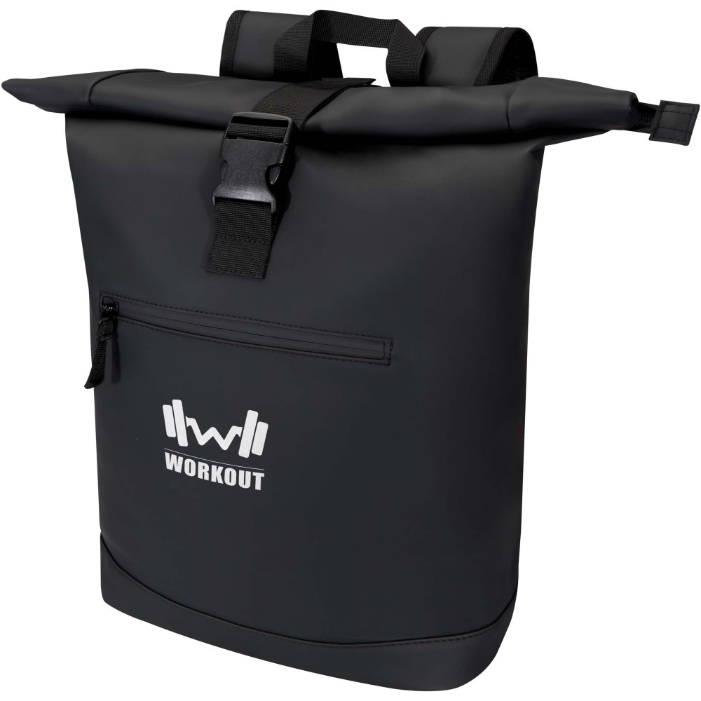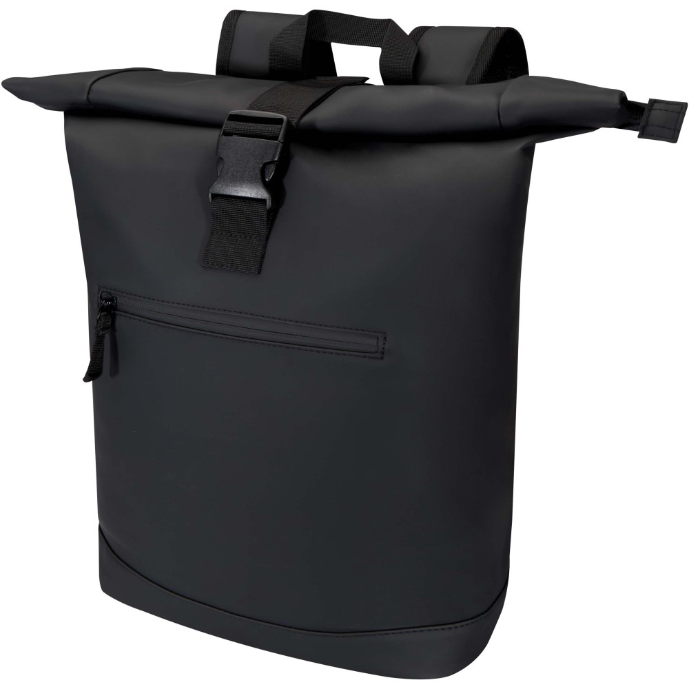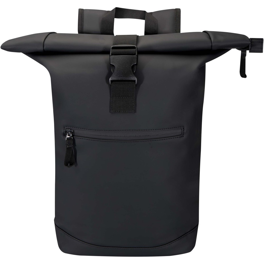 Prémium, újrahasznosított PU bőrből készült, színben harmonizáló RPET béléssel, ez a rolltop hátizsák modern megjelenést és hosszú élettartamot kínál. Vízlepergető felülete megóvja a tartalmát esőtől és nedvességtől, míg a feltekerhető zárórész rugalmas pakolást tesz lehetővé - ideális laptop hátizsákként ingázáshoz, utazáshoz vagy edzőterembe. Belsejében párnázott rekesz található, amely akár 15,6" laptopot is biztonságosan tárol, valamint egy cipzáras zseb a technikai eszközök és mindennapi kellékek rendszerezésére. A külső részen vízálló cipzárral ellátott elülső zseb biztosít gyors és biztonságos hozzáférést, míg a párnázott, állítható vállpántok és a légáteresztő hátpanel egész napos kényelmet nyújtanak. Emblémázás: Szitanyomás