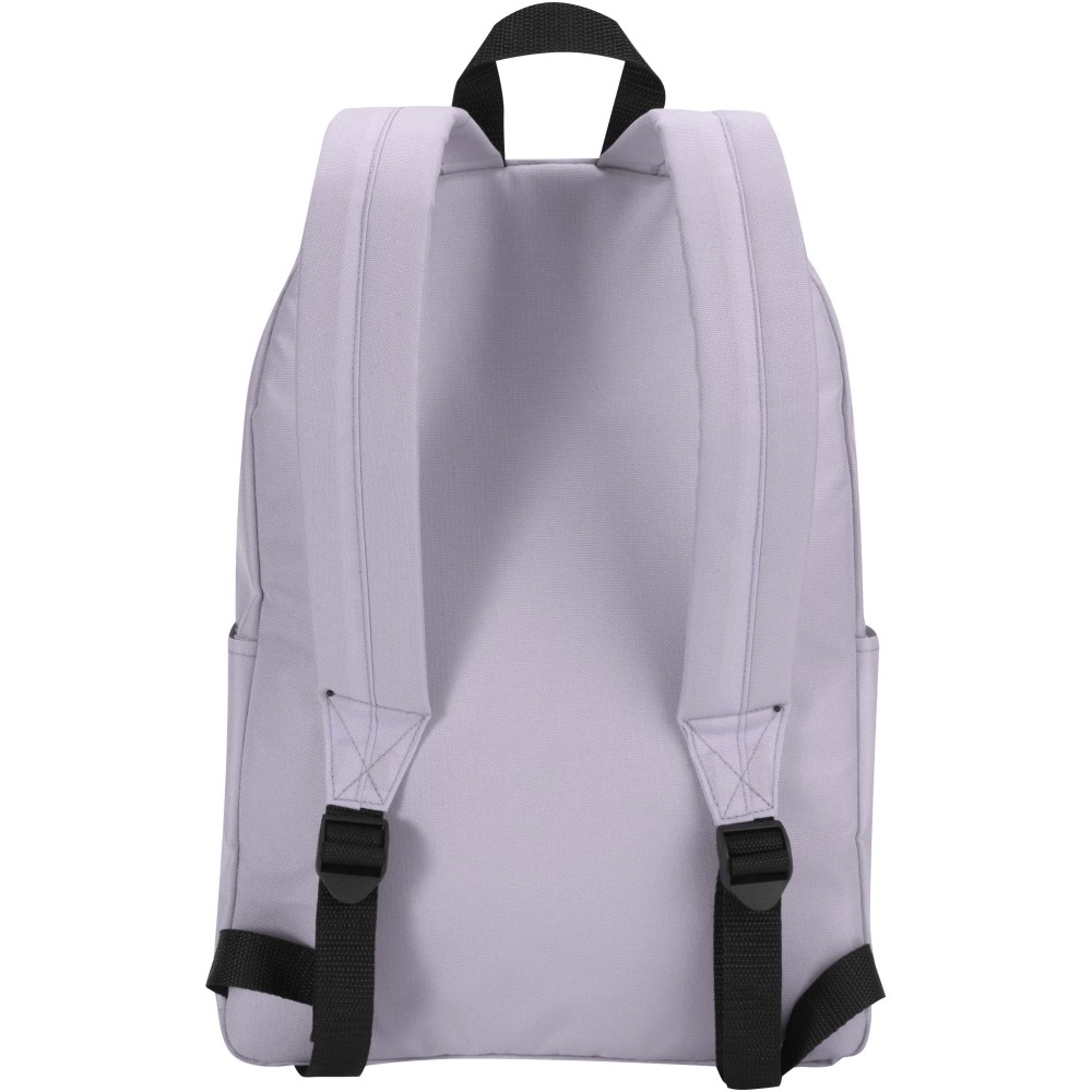 Vízlepergető, GRS tanúsítvánnyal rendelkező, újrahasznosított poliészterből készült a Byron városi laptop hátizsák, amely ideális választás munkába, iskolába vagy városi kiruccanásokra. Karcsú kialakítása 16 literes kapacitást kínál, valamint külön párnázott rekeszt akár 14" laptop számára. Belsejében praktikus rendszerező zsebek segítenek rendben tartani a felszerelést, míg két oldalsó zseb és egy cipzáras elülső zseb biztosít gyors hozzáférést a legfontosabb dolgokhoz. Akár ingázol, akár a várost fedezed fel, ez a kényelmes laptop hátizsák minden lépésnél stílust, tartósságot és funkcionalitást nyújt. Emblémázás: Szitanyomás
