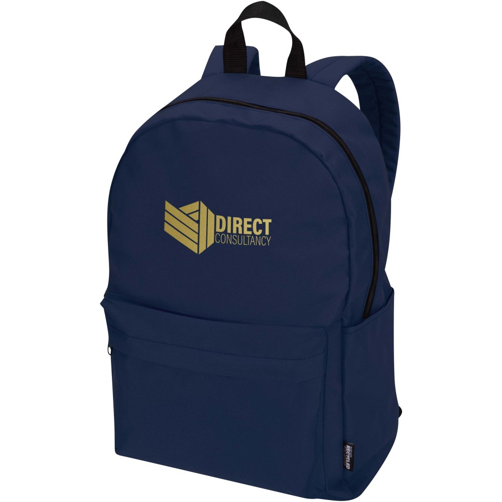 Vízlepergető, GRS tanúsítvánnyal rendelkező, újrahasznosított poliészterből készült a Byron városi laptop hátizsák, amely ideális választás munkába, iskolába vagy városi kiruccanásokra. Karcsú kialakítása 16 literes kapacitást kínál, valamint külön párnázott rekeszt akár 14" laptop számára. Belsejében praktikus rendszerező zsebek segítenek rendben tartani a felszerelést, míg két oldalsó zseb és egy cipzáras elülső zseb biztosít gyors hozzáférést a legfontosabb dolgokhoz. Akár ingázol, akár a várost fedezed fel, ez a kényelmes laptop hátizsák minden lépésnél stílust, tartósságot és funkcionalitást nyújt. Emblémázás: Szitanyomás