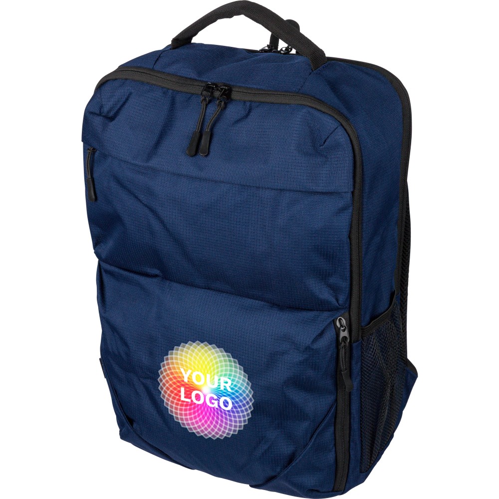 RPET 300D Ocean Bound anyagból készült hátizsák, amely újrahasznosított óceáni műanyagból készül, tartós és texturált felületű kialakítással. 20 literes űrtartalommal rendelkezik, két nagy cipzáras rekesszel, párnázott 15 hüvelykes laptoprekesszel, két elülső zsebbel, hálós oldalzsebbel és felső fogantyúval. Szellőző vállpántokkal, párnázott hátoldallal és bőröndre rögzíthető pánttal ellátva, a terméken Ocean Bound Plastic alapanyagra utaló címke található. Emblémázás: Szitanyomás