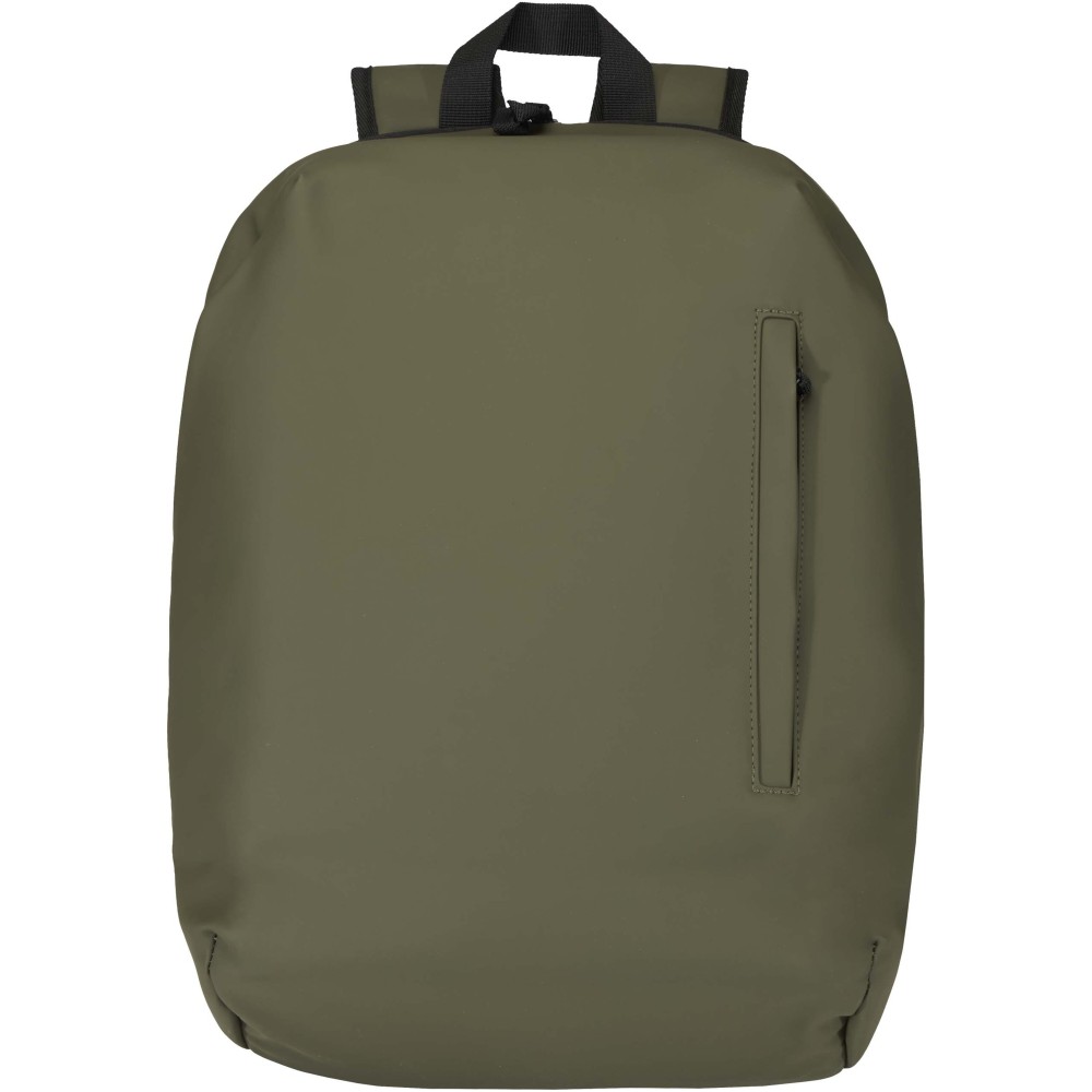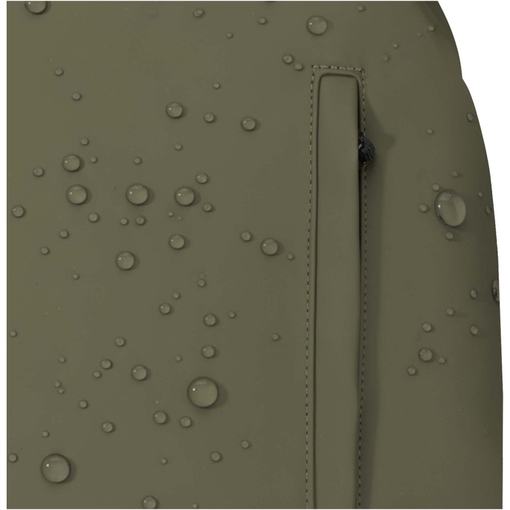 A prémium minőségű, GRS tanúsítvánnyal rendelkező újrahasznosított PU bőrből készült, színben passzoló RPET béléssel ellátott 15?-os biztonsági hátizsák garantálja az értékek védelmét és szárazon tartását útközben. A termék hátulról hozzáférhető laptoprekeszel, két letisztult oldalsó zsebbel, valamint egy vízálló cipzárral felszerelt elülső zsebbel rendelkezik. A légáteresztő hátlap biztosítja az egész napos kényelmet, így ideális választás ingázáshoz, utazáshoz vagy városi használatra. Űrtartalma: 18 liter. Emblémázás: Szitanyomás