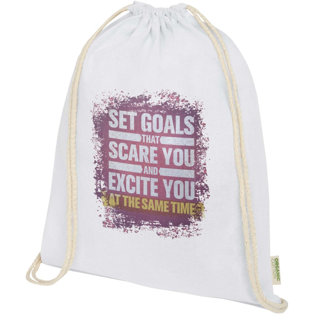 OCS tanúsítvánnyal rendelkező, 100% organikus pamutból készült húzózsinóros hátizsák környezetbarát és praktikus választás. A termék egy tágas főrekesszel és pamut zsinóros záródással rendelkezik, amely biztonságos tárolást garantál értéktárgyak számára. A táska teherbírása legfeljebb 5 kg. Űrtartalma: 5 liter. 140 g/m2 anyag. Emblémázás: Szitanyomás