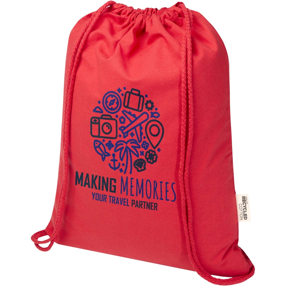 60% újrahasznosított pamutból és 40% RPET-ből készült, GRS tanúsítvánnyal rendelkező tornazsák. Egyszerre erős és könnyű megoldást kínál a mindennapi használatra. Kényelmesen hordható háton vagy vállon, nagyméretű főrekesze pedig a pamut összehúzó zsinórral gyorsan nyitható és zárható. A 180 g/m2 súlyú anyag tartós, és bőséges felületet biztosít logók vagy üzenetek megjelenítésére, így ideális promóciós ajándék márkaépítéshez vagy kampányokhoz. A hátizsák teherbírása max. 5 kg. Emblémázás: Szitanyomás