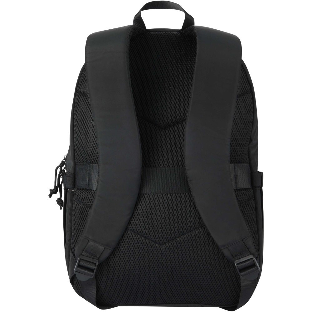 A Puffer 15,6" laptop hátizsák puha, könnyű kialakítású, és a mai, aktív mindennapok igényeihez készült. Prémium minőségű, GRS tanúsítvánnyal rendelkező újrahasznosított alapanyagokból készül, miközben a mindennapi használatot segítő megoldásokat kínál. A vízlepergető kivitelű, 18 literes táska párnázott fő rekesszel rendelkezik, amely legfeljebb 15,6 colos laptop biztonságos tárolására alkalmas, emellett több külső zseb segít a szükséges eszközök rendszerezésében. A szellőző hálós hátrész és a bőröndre rögzíthető pánt kényelmesebbé teszi az utazást, míg a jellegzetes puffer stílusú párnázás letisztult megjelenést és extra védelmet biztosít a tartalom számára. Ideális választás munkába járáshoz, iskolába vagy utazáshoz. Emblémázás: Szitanyomás