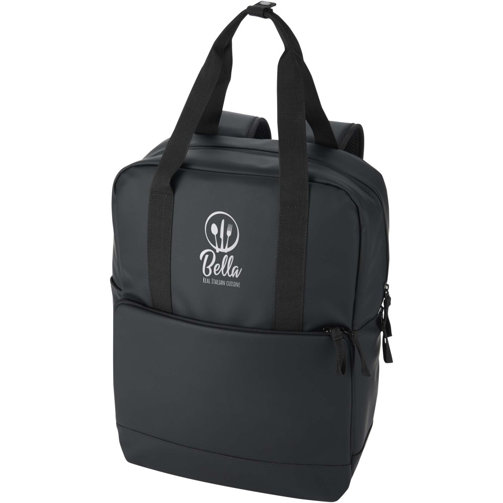 Ez a 18 literes hűtőhátizsák GRS tanúsítvánnyal rendelkező, újrahasznosított PU-műbőrből készült, színben harmonizáló RPET béléssel, így ideális választás szabadtéri programokhoz. A tágas főrekesz kiváló minőségű PEVA béléssel és vastag PE habszigeteléssel biztosítja az ételek és italok hűtését, míg a belső rugalmas pántok stabilan rögzítik a borospalackokat. A termék egy nagy méretű, párnázott elülső cipzáras zsebbel rendelkezik az extra védelem érdekében, az oldalsó nyitott zseb pedig gyors hozzáférést biztosít a kulacsokhoz. A kényelmes viseletről a légáteresztő hálós hátrész, valamint az állítható és párnázott vállpántok gondoskodnak, így praktikus kiegészítő piknikezéshez, strandoláshoz vagy kempingezéshez. Emblémázás: Szitanyomás