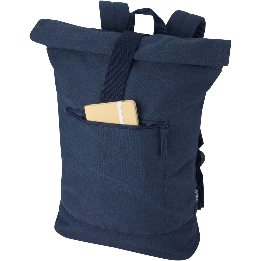 A Recanvas roll-top hátizsák GRS tanúsítvánnyal rendelkező, újrahasznosított és vízlepergető vászonból készült, színben harmonizáló RPET béléssel. A 16 literes űrtartalmú táska egy párnázott rekesszel rendelkezik a legfeljebb 14"-os laptopok számára, emellett egy cipzáras elülső zsebbel, légáteresztő hálós hátrésszel és a kényelmet szolgáló állítható vállpántokkal van felszerelve. A bővíthető roll-top záródás lehetővé teszi a tárolókapacitás növelését igény szerint, ami ideálissá teszi ingázáshoz, utazáshoz vagy szabadtéri kalandokhoz. Emblémázás: Szitanyomás