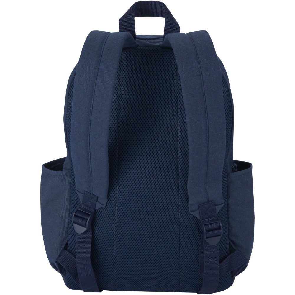 A Recanvas városi hátizsák GRS tanúsítvánnyal rendelkező, újrahasznosított és vízlepergető vászonból készült, színben harmonizáló RPET béléssel. A 16 literes űrtartalmú táska egy párnázott, 15,6"-os laptoprekesszel és egy további párnázott tárolórekesszel rendelkezik, emellett egy cipzáras elülső zsebbel, két oldalsó zsebbel, légáteresztő hálós hátrésszel és a kényelmes viseletet biztosító állítható vállpántokkal. Kialakítása révén ideális választás ingázáshoz, iskolába vagy egyéb napi használatra. Emblémázás: Szitanyomás