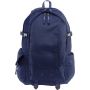 Hátizsák két nagy cipzáras rekesszel és két oldalzsebbel. PU és 210D bordás anyag. Emblémázás: Szitanyomás