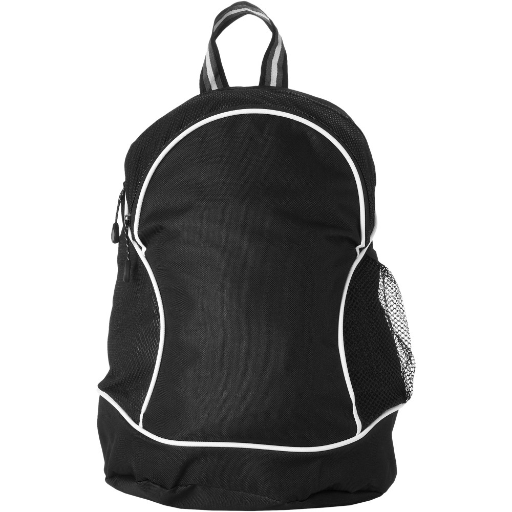 Cipzáros főrész és első zseb belső rendezővel. Oldalt hálós zseb. Párnázott, állítható vállpántokkal. 600D poliészter és nemszőtt 80 g/m2 poliészter. Emblémázás: Szitanyomás