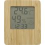 Időjárásállomás összecsukható állvánnyal. Funkciók: óra, naptár, hőmérő, páratartalom-mérő. Elemek mellékelve. Bambusz és ABS. Emblémázás: Gravírozás, Tamponnyomás