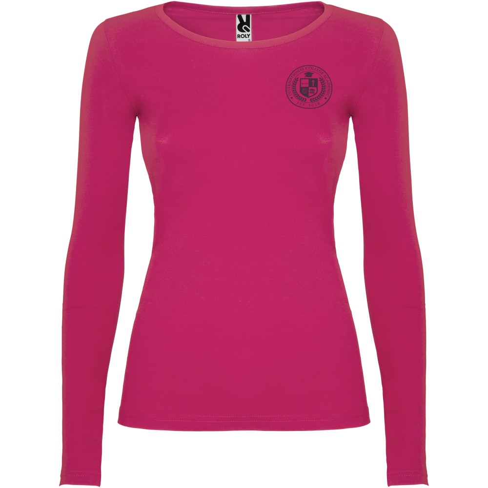 Hosszúujjú, oldalvarott, enyhén karcsúsított női póló 4 rétegű, kerek, keskeny nyakkal. Nincs ujj- és aljpasszé. Megerősített nyaki varrások. A férfi modell körkötött, a gyermek és női modell oldalvarrott. Szürke szín: 85% pamut és 15% viszkóz, 160 g/m2. Egyéb színek: 100% pamut, 160 g/m2. Emblémázás: Hímzés, Szitanyomás