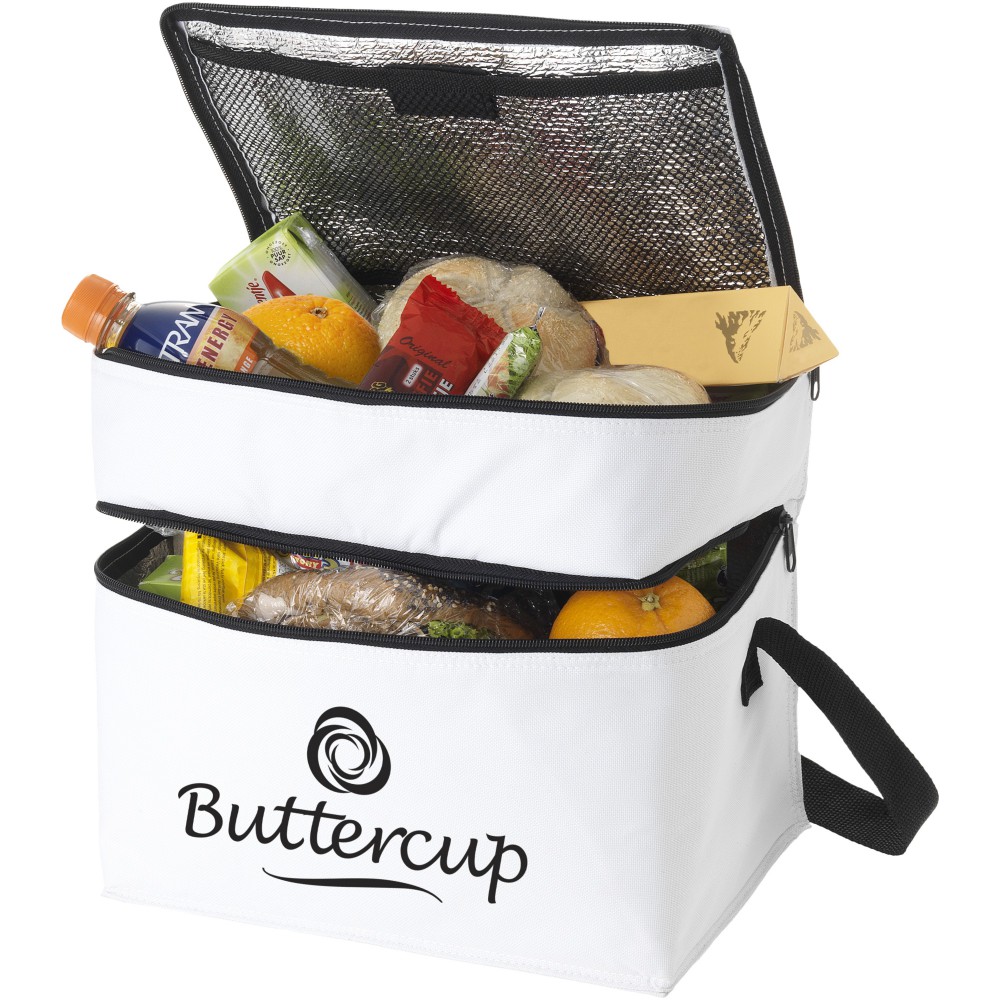 Az Oslo hűtőtáskával bármikor és bárhol hűtött italokat és harapnivalókat biztosíthat. A hűtőtáska két különálló cipzáras rekesszel rendelkezik. A felső része tökéletes az apró falatok tárolására, az alsó része pedig a nagyobb élelmiszerek tárolására. A vállpánt állítható, így a táskát mindenki könnyen hordozhatja. A hűtőtáska 600D poliészterből készült, amely egy nagy teherbírású és tartós szövet. Emblémázás: Szitanyomás