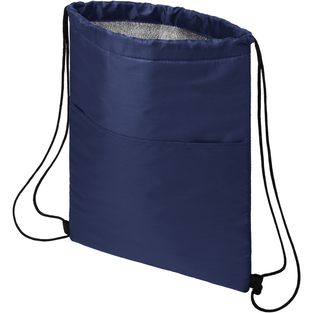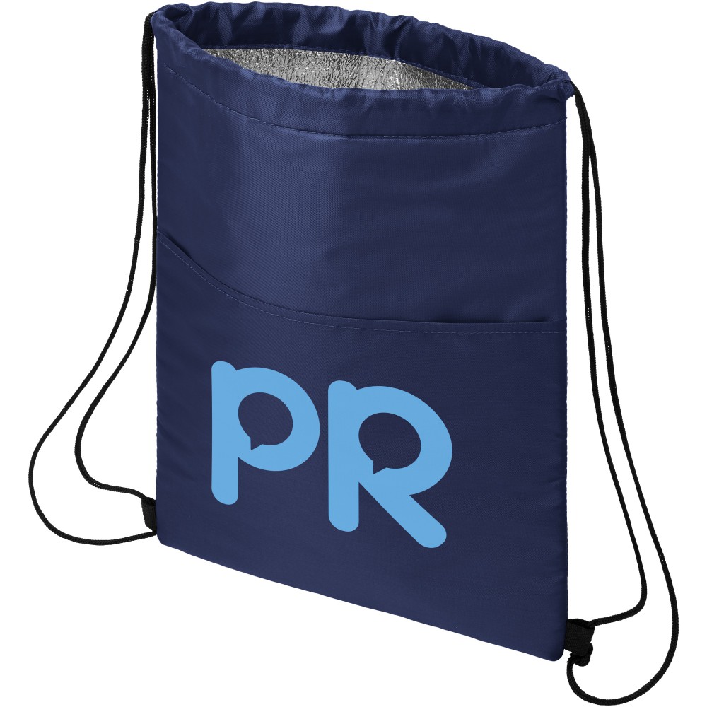 Hátizsák és hűtőtáska fekete húzózsinórral 12 doboz számára. Teherbírás 5 kg-ig. 210D poliészter. Emblémázás: Szitanyomás