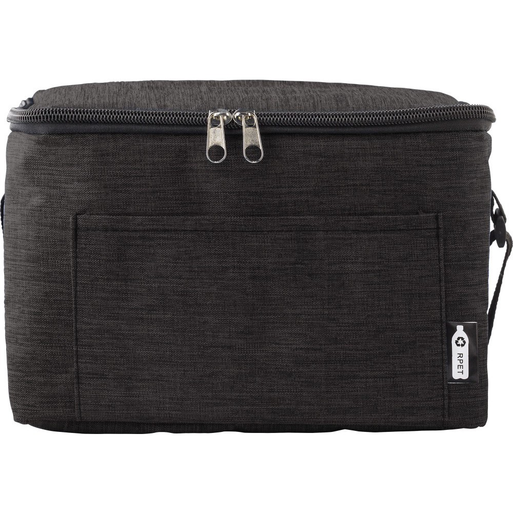 Hűtőtáska hat darab 330 ml-es üdítősdoboz számára. Cipzárral, első zsebbel és állítható pánttal. Űrtartalom: 3 liter. Poliészter (600D) és RPET anyag PEVA belsővel. Emblémázás: Szitanyomás
