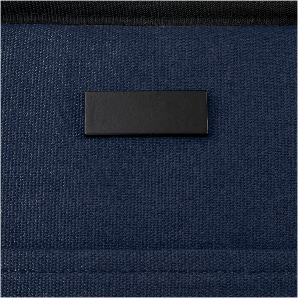 A rendkívül tartós és fenntartható anyagokból, GRS újrahasznosított vászonból és GRS RPET béléssel készült Joey hűtőtáska élelmiszer-minőségi előírásoknak megfelelő, PEVA béléssel ellátott, szigetelt fő rekesszel, nyitott elülső zsebbel és két megerősített hevederes fogóval rendelkezik a kényelmes szállítás érdekében. Emblémázás: Szitanyomás